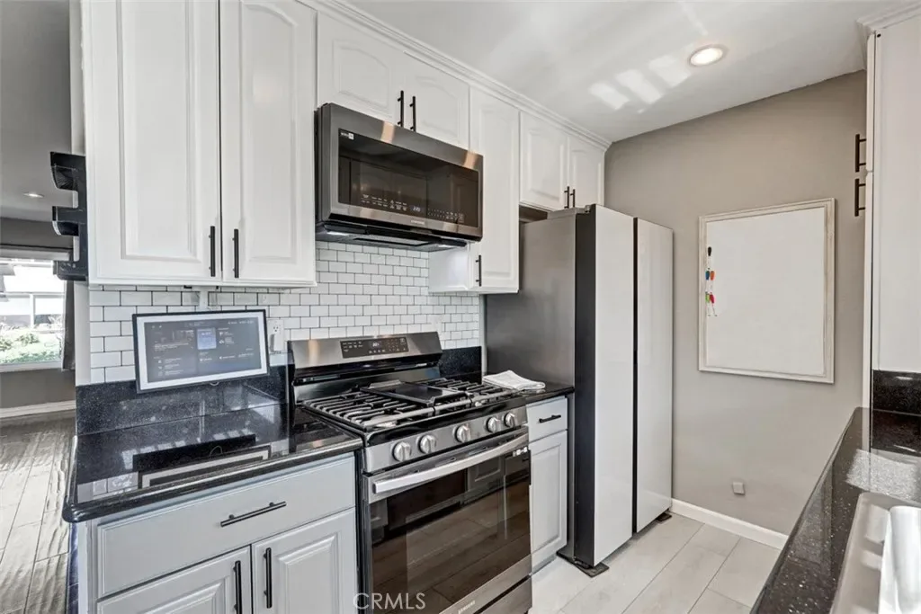 Fabulous 2 Bdrm 1 1/2 Bath Townhome in the Gated Community “The Oaks”. Bright & Sunny End Unit with Refurbished Kitchen Cabinets, Granite Counters and Stainless Appliances. Newer Built-in Microwave, Refrigerator & New Gas Range included. Both Bathrooms are Remodeled. Slightly larger (since end unit) Very Private Back Patio/Yard. Direct access to 2 Car Garage. Laundry is in the Garage, Washer & Dryer are included. A/C. Double Pane Windows. 910 Sqft per Assessor. Community Clubhouse, Pool & Spa. Lots of Green Space and Plenty of Guest Parking. Easy Access to the 91 & 605 Frwys.