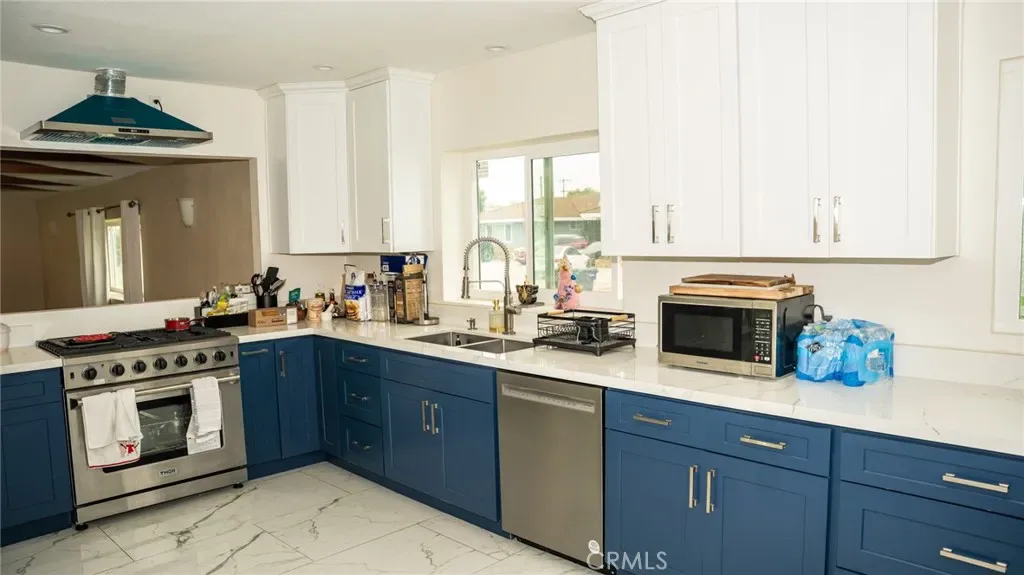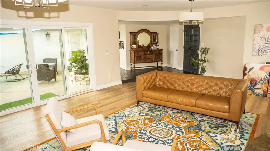 Welcome to 9837 Belfair Street, a fully renovated home in one of Bellflower’s most desirable areas. This stunning 3 bedroom, 2 1/2 bath home offers resort style living with a sparkling pool, sophisticated upgrades throughout and premium material that rival new construction. Every detail has been thoughtfully curated. As you step inside you will find soaring ceilings, black slate entry, luxury vinyl plank flooring and Benjamin Moore designer paint tones. The gourmet kitchen is a showstopper, completely rebuilt with custom cabinetry, porcelain tile, high end counter tops and premium appliances perfect for the modern chef. All 3 bedrooms have been remodeled with pscale fixtures, sleek finishes. The homes open floor plan seamlessly blends comfort and elegance with an abundance of natural light and new mini-split HVAC system for efficient climate control. The backyard is a private oasis, complete with a pristine swimming pool, perfect for entertaining or relaxing year round.