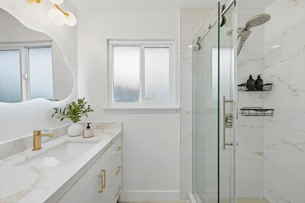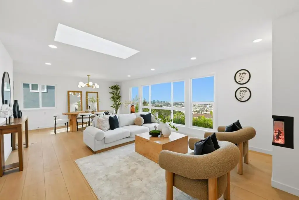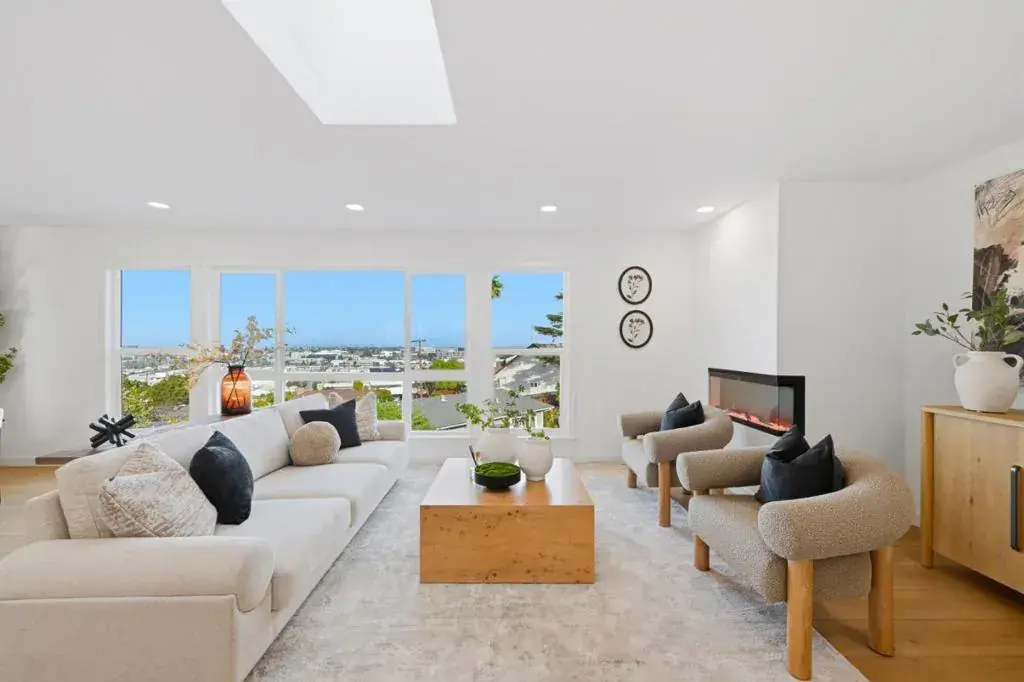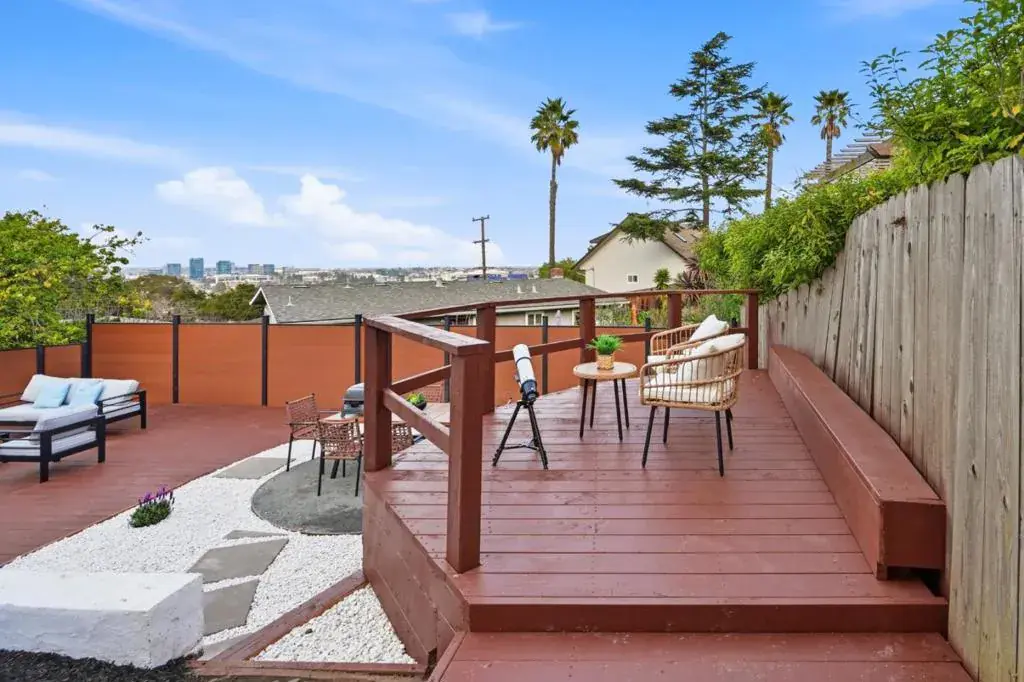 Extensively remodeled 4-bedroom, 3-bathroom home with a dedicated office, offering a flexible and functional floor plan. Recent upgrades include a newer electrical panel, fully remodeled kitchen and bathrooms, updated furnace and ductwork, recently installed insulation, and all-new windows throughout. The main level features three bedrooms and two bathrooms, including a newly added primary bathroom finished with Porcelanosa tile. The updated kitchen offers slim shaker cabinetry, quartz countertops, and smart appliances. Bright living spaces showcase quality finishes and abundant natural light. The lower level provides additional living space with a secondary family room, fourth bedroom, private office, and a full bathroom, ideal for guests, work-from-home, or multi-generational living. Outdoor amenities include a rare oversized deck with an outdoor movie projector, an additional viewing deck with Bay water views, and decking and fencing constructed with a combination of composite materials and solid wood. Low-maintenance artificial turf, decorative stepping stones, and landscaped grounds complete the exterior. Located in a top-rated school district, this move-in-ready home offers comfort, versatility, and convenience in a highly desirable Peninsula location.