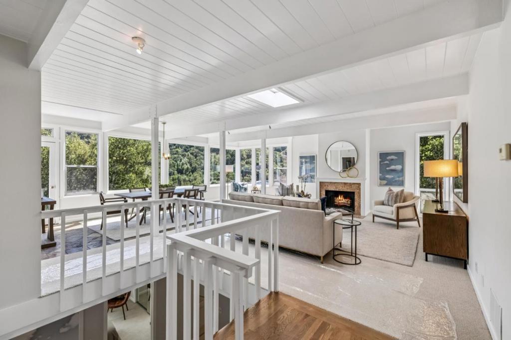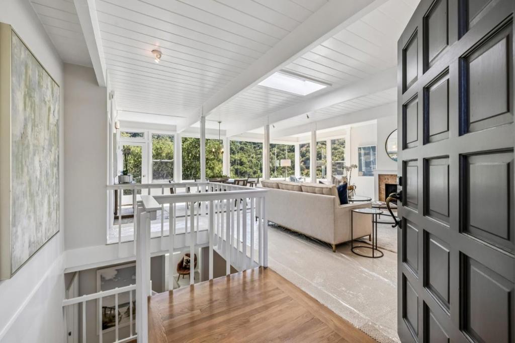 Canyon views and utmost privacy in a quiet hillside setting in the lovely Haskins Estates neighborhood. Nestled among the trees is an alluring home with a Modern Craftsman facade, and a refreshed landscape with spring flowers and a captivating approach to the front entrance. Enter the striking interior and find a large open living area with stunning views that will give you pause. Enjoy the freshly painted interior with beamed ceilings, refinished hardwood and slate-lined floors, newly carpeted bedrooms, and a bounty of sparkling windows and glass doors showcasing views, and opening to new decks with cable railings. Framed by tranquil vistas, the living and dining areas extend to the upper deck via French door, while the kitchen, with dining island, stainless appliances and casual dining area, has a sliding glass door to the same deck. Lower levels comprise four bedrooms, including a primary suite with private deck, and a flexible guest suite with private entrance. A secluded office with walk-in storage is a bonus. Balancing modern living with down-to-earth style, this home has the lure of seclusion, yet is < 3 miles from The Village, Caltrain, Hillsdale Shopping and top-rated schools.