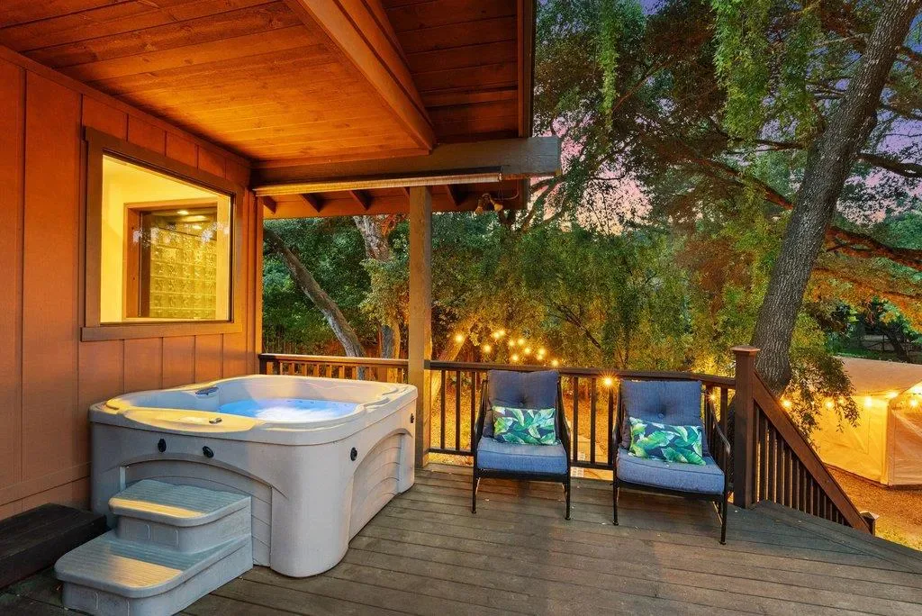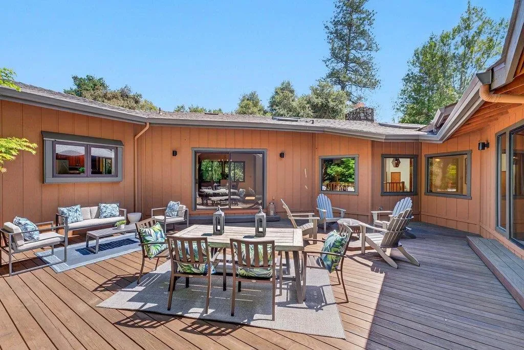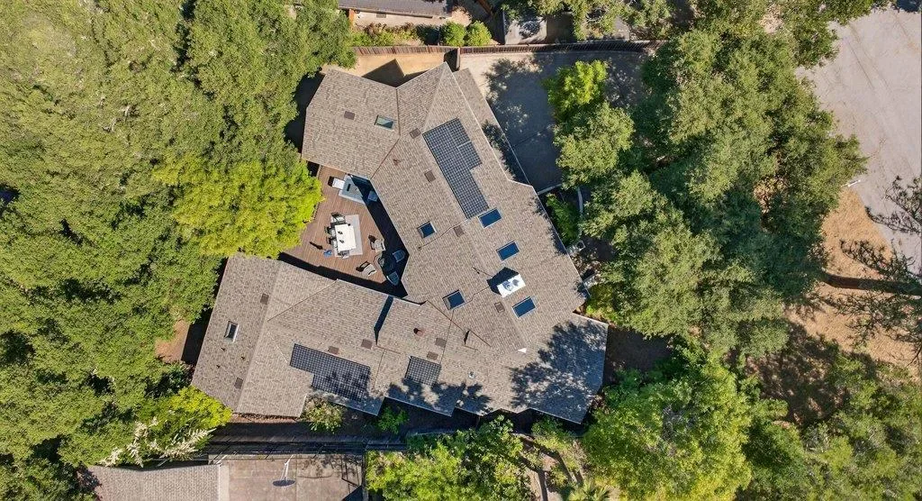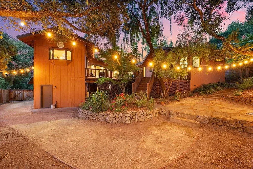 Welcome to 135 Indian Springs Drive, an elegant and private luxury home. Set at the end of a quiet cul-de-sac, this refined residence offers beautiful views of mature oak trees, a terraced yard, and exceptional indoor-outdoor flow for entertaining. The main living area features soaring wood ceilings, large windows, skylights, and a dramatic stone fireplace. The chefs kitchen boasts custom wood cabinetry, dual ovens, gas cooktop, wine fridge, pantry cabinet, and abundant counter space. The floor plan includes two bedrooms and 1.5 baths in one wing, while the private primary suite occupies its own wing with two walk-in closets and a spa-like bath with soaking tub, dual-head shower, and direct hot tub access. Downstairs, a spacious family room adds versatility. Systems include natural gas, city water, multi-zone HVAC (2017), solar panels with Enphase 10kWh battery, central vacuum, plus a premium new roof and gutters (2026). A 3-car garage, large driveway, RV/boat parking, and fruit trees complete this rare offering.