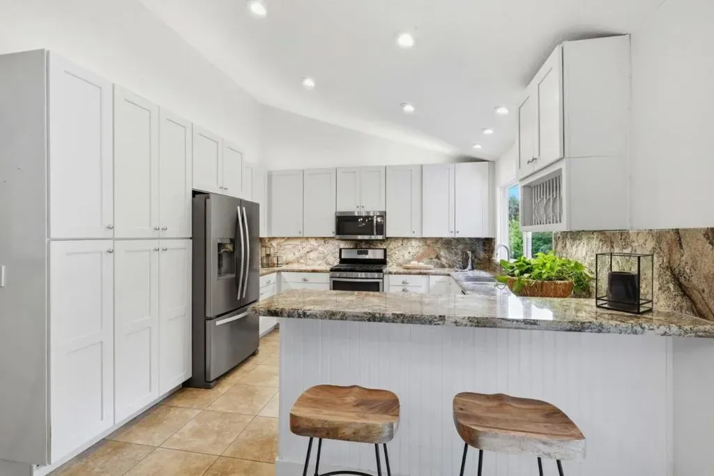 Enjoy the glorious greeting the sunshine grants the mountains in this inviting 2,041 sf, 3 bedroom 2 bath home basking in mountain views on a 22,041 sf lot in sought after Ben Lomond. Step inside to vaulted ceilings that soar to the upstairs bedrooms and bathrooms, filling the home with natural light and an airy sense of space. The remodeled kitchen features modern finishes, generous granite counter space and a sliding glass door to the patio and gazebo–perfect for outdoor dining or entertaining under the stars. The bonus room, on the lower level, opens directly to the garden for a game room, home office or private retreat. Outside discover a landscaped backyard oasis with a meandering walkway winding through a hidden garden, ideal for quiet mornings or sunset strolls. This mountain home is located in an award winning school district, minutes to Ben Lomond, 20 minutes to beaches and easy commute to Los Gatos. Don’t miss this opportunity… It is a home that offers not only a lovely space to live but a peaceful lifestyle too.