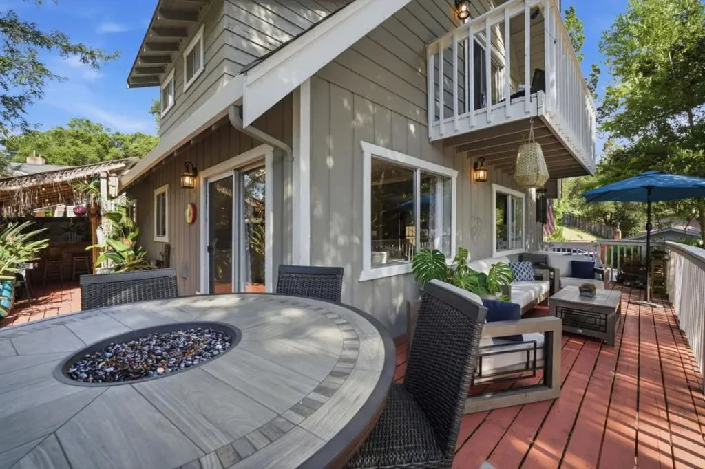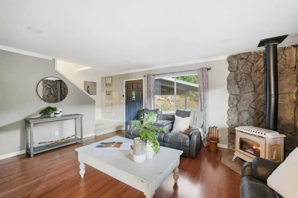 Escape the hustle and step into your own private retreat on sought-after Hihn Road in beautiful Ben Lomond. This hidden gem offers 3 bedrooms, 2.5 bathrooms, and 1,476 sq. ft of thoughtfully designed living space, surrounded by towering redwoods, fresh mountain air, and unobstructed views of the breathtaking San Lorenzo Valley. Wake each morning to peaceful, panoramic scenery and unwind in the evenings with vibrant sunsets from the expansive wraparound deck, an ideal setting for morning coffee, outdoor dining, or simply soaking in the serenity. The seamless indoor-outdoor flow creates a lifestyle that feels calm, elevated, and completely removed from the everyday. A unique highlight is the inviting tiki lounge, offering a relaxed, island-inspired setting perfect for entertaining or enjoying quiet moments year-round. Perfectly positioned for both, privacy and accessibility, you’re just minutes from Henry Cowell Redwoods State Park, 10 minutes to Highway 17, and roughly 20 minutes to the nearest beaches. This is more than a home it’s a peaceful mountain sanctuary where nature, views, and lifestyle come together effortlessly.