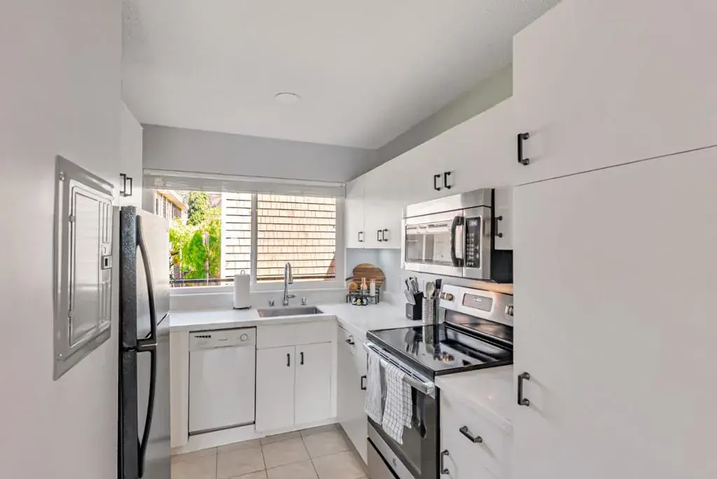 THE best, move-in ready home on the south side of the Cal Compus, nested in the vibrant Elmwood District, is close to everything. This charming, well cared 1-bed, 1-bath home blends style and function, a permitted bonus room adds versatility as a guest room or an office. Thoughtful designs and modernized in 2021, include upgraded electrical, recessed lighting and more, ensure comfort and peace of mind. The open-concept living/dining area creates a welcoming space. The Scandi-inspired kitchen and bath feature sleek, low-maintenance finishes. Tile flooring throughout the living space add to the home’s timeless appeal, while the carpeted bedroom adds coziness. Custom made, high-end window blinds, covering wall to wall windows, allow natural light without sacrificing privacy. It is indeed a paradise retreat after a long day work or study. Enjoy a serene courtyard, gated garage and keyless entry for security, elevators, deeded parking and storage, plus app-operated laundry. Multiple bus lines at doorstep make commuting to Berkeley BART/Downtown, or around the Cal campus a breeze. The Elmwood District is a desirable and beloved Berkeley gem, home to 50+ shops, cafes, and restaurants, plus the historic Rialto Cinema offering the perfect mix of urban convenience and laid-back charm.