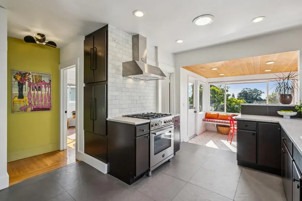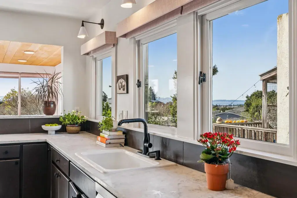 Rarest of the Rare!!! 1. Level in 2. View 3. Close to dozens of local shops, coffee & restaurants. How often does that happen!?!??? 1920’s Bungalow reimagined for today’s living. Gleaming modern touches throughout. Strong sightlines from updated living room straight through to the stunning South facing sunset-view banquette dining area with a timeless bay view as well as an overlook of the open and welcoming outdoors. Sleek remodeled kitchen with Bertazzoni range and vent, spacious marble counter, new stainless-steel dishwasher and fridge. Wash dishes while seeing glimpses of bay and city views. Stylish redone bathroom with new penny tile and sophisticated wallpaper. Stunning custom exterior black steel spiral staircase leads to the sunny garden with Lemons, Limes, Persimmons, Apples and more… Raised beds for growing your very own herbs and vegetables. Inviting outdoor dining and relaxing spaces. Dedicated laundry room with storage galore. High ceiling unfinished bonus area downstairs with level in access from the backyard for workshop/storage/your imagination. Sewer lateral Compliant. BESO score 3.