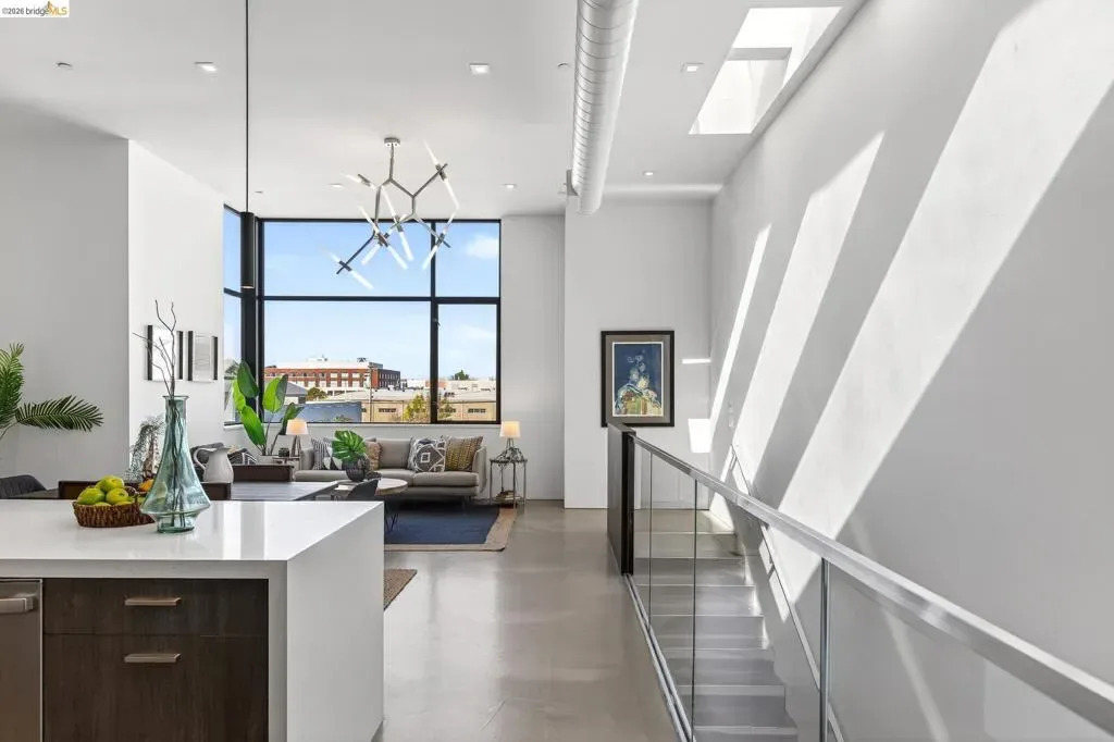 811 Folger Avenue, completed in 2020, offers an elegant interpretation of a hybrid “Live-Work” design by architect David Stark Wilson. This is an all-electric property, BESO exempt! The property has two residential floors and one office/workspace floor. Both the residential and workspace/office floors have independent heating and AC systems, all powered by a rooftop solar array. The residential floors feature 3 bedrooms and 2 bathrooms, a private front deck, and an open-plan study. The top floor has a spectacular “great room”, a dynamic kitchen/dining area/living room combination featuring a huge island, a suite of SS energy-efficient appliances, and beautiful custom windows with urban views. The office/workspace floor has a level-in independent entry, an ADA bathroom, and the counter space is plumbed for a microwave and refrigerator. The tall French doors capture the southern light, illuminating this space with bright natural light. This office space may be rented separately. The heart of the property is an unexpected stainless-steel staircase, an unexpected companion to the polished concrete floors and board-formed concrete walls. The property has two designated parking spaces (one space has an electric car charger) and is near Berkeley Bowl, shops, cafes, and mass transit.
