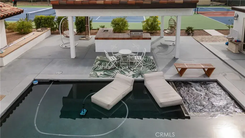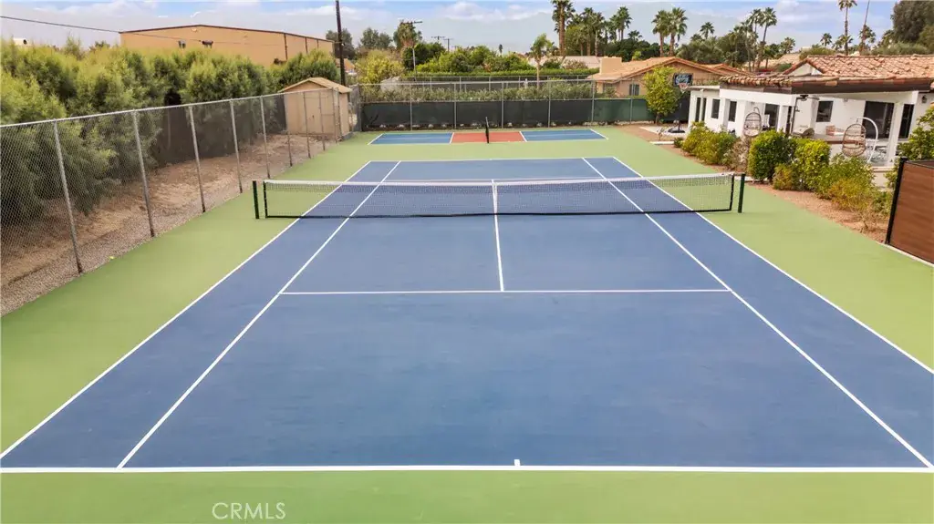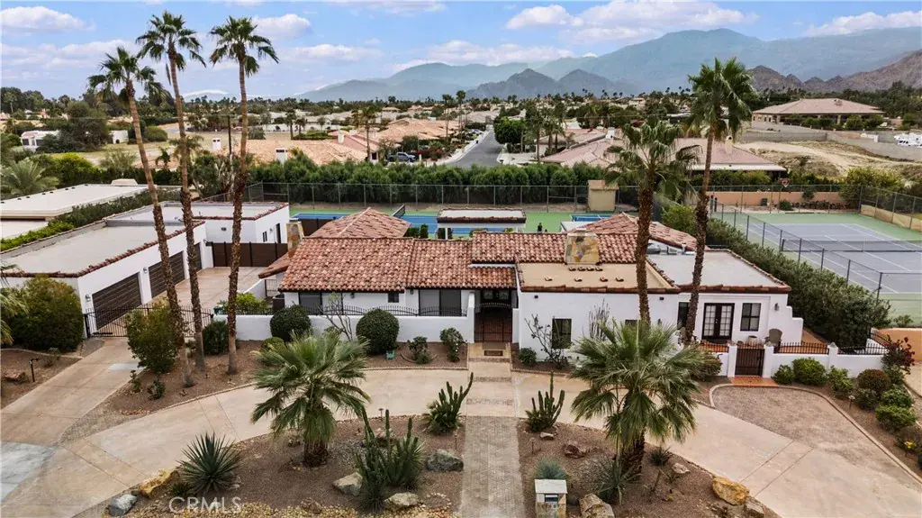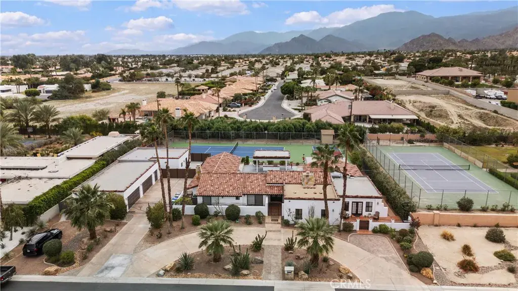 The detached guest casita offers approximately 1,100 square feet of additional living space with 1 bedroom and 1.5 bathrooms. Designed with privacy in mind, it is separately fenced from the main residence and includes its own laundry room, oversized walk-in closet, and a flexible nook with space for a potential second sleeping area or office. This estate is built for security and convenience, featuring a four-car garage plus an additional garage for a golf cart or small vehicle, along with a gated driveway. The outdoor living experience is unmatched, with an Olympic-size tennis court, a professional-grade pickleball court, a resort-style swimming pool (3 to 6 feet deep), built-in jacuzzi, and a covered patio with outdoor BBQ—perfect for entertaining year-round. Combining luxury, privacy, security, and resort-style amenities, this one-of-a-kind Bermuda Dunes estate offers an unparalleled lifestyle within one of the desert’s most sought-after gated communities.