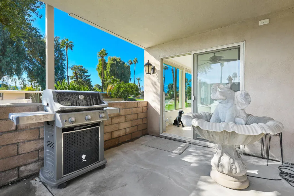 ( updated photos coming ) 2BD, 2BA one level condominium with private spa and wrap around patio. 2 resort pools. You will love the organic indoor-outdoor living with mountain views and pool view. Kitchen with slab granite counters. Lodge fireplace with conversation pit in the great room. Interior laundry with stack washer & dryer. There is convenient off-street parking plus a one-car garage. Newer spa equipment. This sophisticated retreat is truly a one-of-a-kind. Bermuda Dunes Country Club is a gated community with Legacy and Prestige, world-class golf and minutes from the Indian Wells Tennis Gardens, destination shopping on El Paseo in Palm Desert, and world class medical facilities. Easy access to the I-10 Freeway for quick travel to the Acrisure Arena and airports. Owners include HOA fees, Internet, trash, landscape maintenance, spa maintenance, cable TV with two boxes with Cinemax/Showtime/HBO and internet with Spectrum. No memberships included. Contact agent for more information.