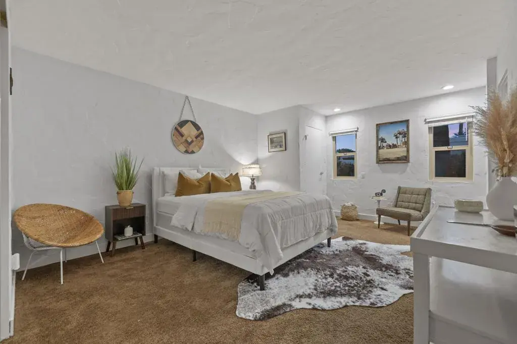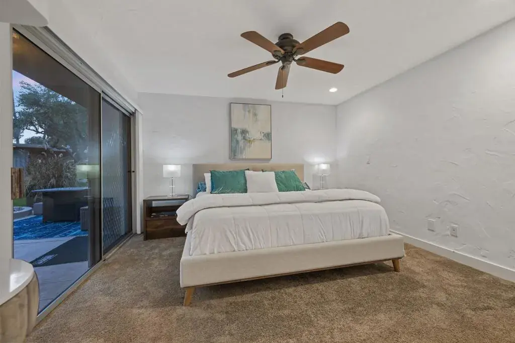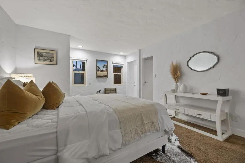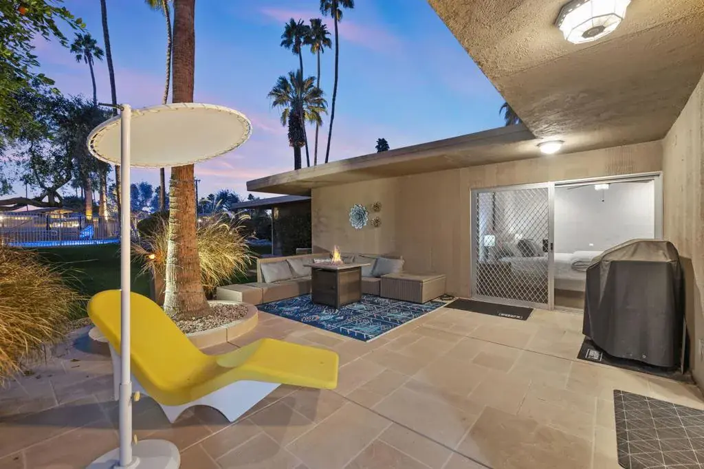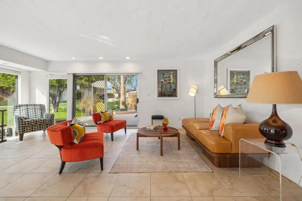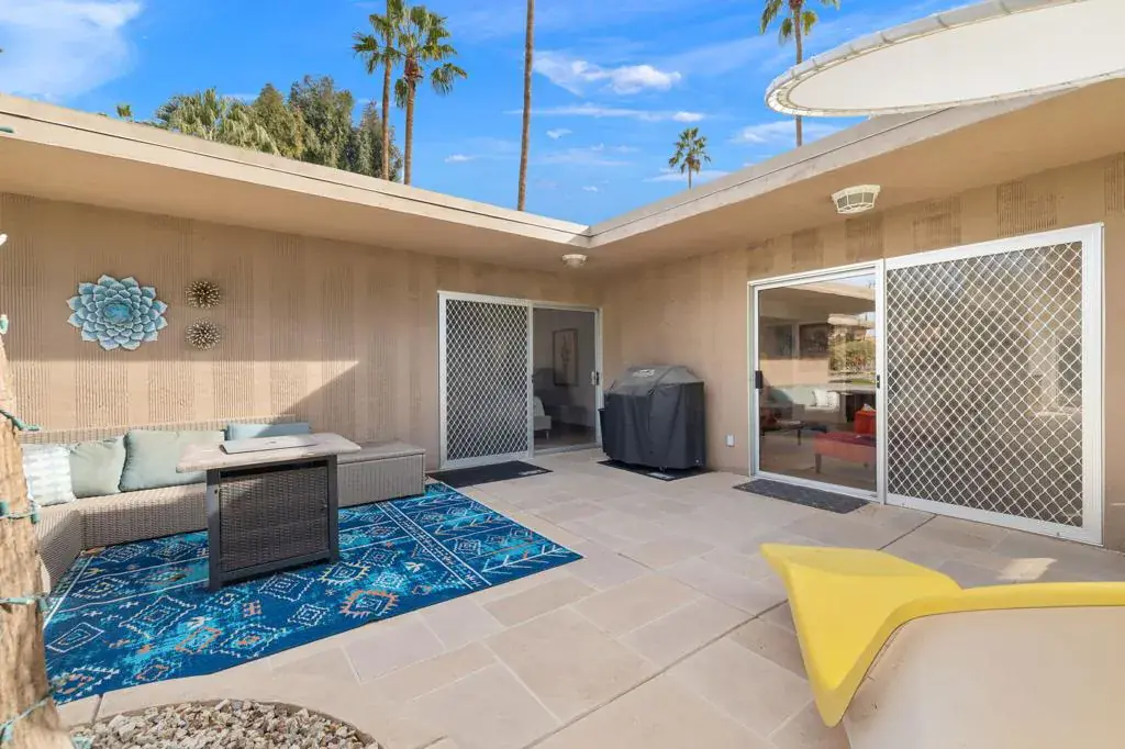 Classic Mid Century Bermuda Fairway Villas – a charming enclave of Adorable Mid-Century cottages nestled between the 1st and 18th fairways of Bermuda Dunes Country Club.This beautifully and professionally remodeled condo offers a bright and welcoming atmosphere with only one common wall and convenient access to the community pool, spa, and parking.Upgrades include:Newer stainless steel appliancesHigh-end wooden window blinds and updated slider blindsRadiant electric fireplace insertLight textured paint on walls and ceilings for a fresh, airy feelNewer baseboards and tile flooring throughoutNew electrical panel and outlet rewiring (2018)Brand-new AC/heat pump (2024)The home also features added square footage, creating a spacious dining/great room area. One of the highlights is the expansive tiled patio, perfect for outdoor entertaining.Additional amenities:Attached golf cart garage with automatic opener, full-size washer & dryer, and extra storage space for your golf cartOne covered parking space plus tandem parking for a second vehicleHOA covers all exterior maintenance (including roof), landscaping, water, trash, septic, and exterior pest controlHOA dues include cable TV (two boxes with HBO, Showtime & Cinemax), Spectrum internet, and 24-hour guard-gated. Villas HOA fee includes, trash, water, waste, exterior wall paint/lighting and roof maintenance.Come see this rare opportunity to have Mid Century Charm with today’s standards of living accommodations