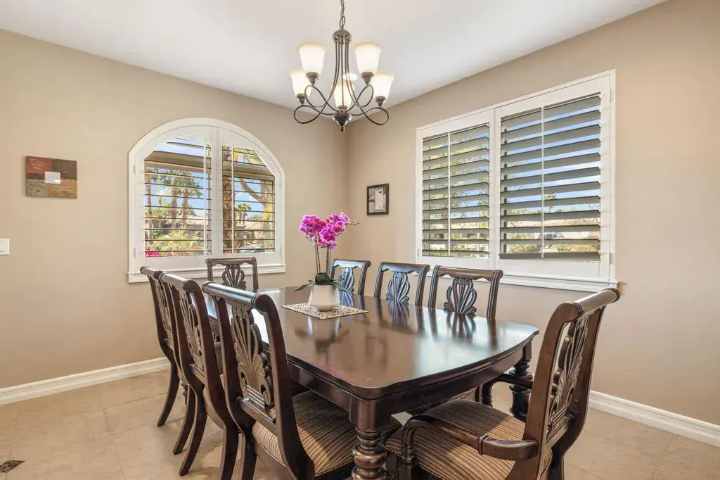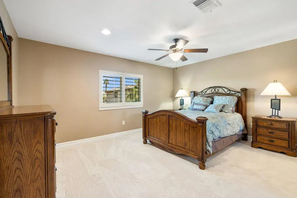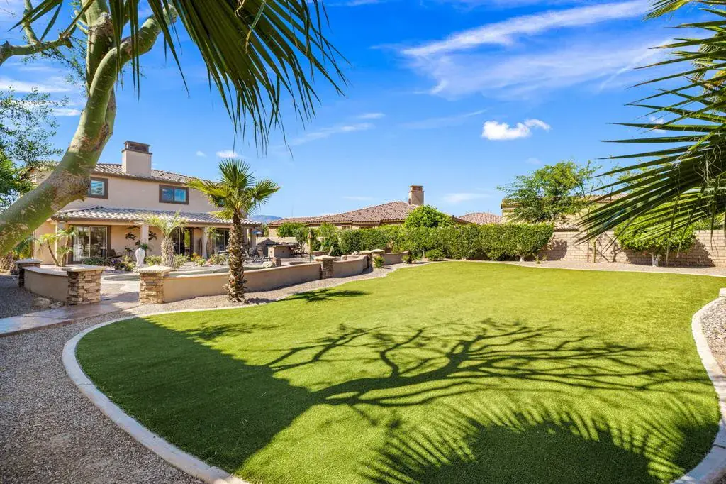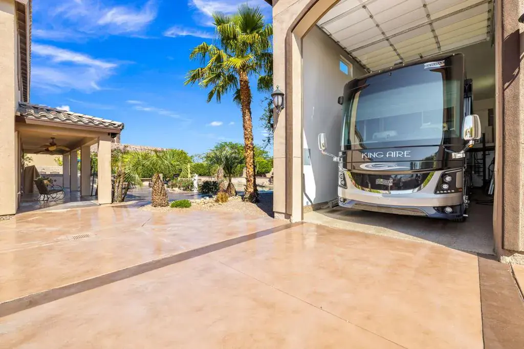 Exceptional estate with a massive 16′ x 56′ on-site RV GARAGE located within an exclusive gated enclave of just 11 homes. Situated on an over half-acre lot, this one of a kind 6-bedroom, 6-bathroom property is designed for those who need serious space and love to entertain. The RV garage features a mezzanine for storage, built in work bench, private bathroom, individual A/C, 50-amp service, and clean-out, complemented by a 3-car attached garage and expansive side yard for additional parking- what more could you need! The private resort-style backyard is an entertainer’s dream, offering a Pebble Tec pool and spa, built-in gas fire pit, and a large outdoor kitchen with granite countertops, gas BBQ, sink, refrigerator, and ample seating, plus refreshed stamped concrete and low-maintenance artificial turf- ideal for pets and kids to play. Inside, enjoy a functional and elegant layout with a main-floor primary suite overlooking the backyard, massive primary en suite with soaking tub, large shower, his and hers vanities, and large walk in closet as well as a formal dining room, dedicated first floor office, and an upstairs bonus room with dry bar and mini-fridge. The gourmet eat-in kitchen includes rich wood cabinetry with custom pull-outs, granite countertops, built-in double door stainlesssteel refrigerator, dual ovens, gas range, microwave, and walk-in pantry. Upstairs offers two bedrooms with private en-suites and three additional bedrooms sharing a dual-sink bath- perfect for large families or those who love to host! Additional highlights include epoxied garage floors, low HOA dues, low taxes, IID electric for lower utility costs, offered turn-key furnished in desirable Bermuda Dunes. Minimum 30 day rentals.