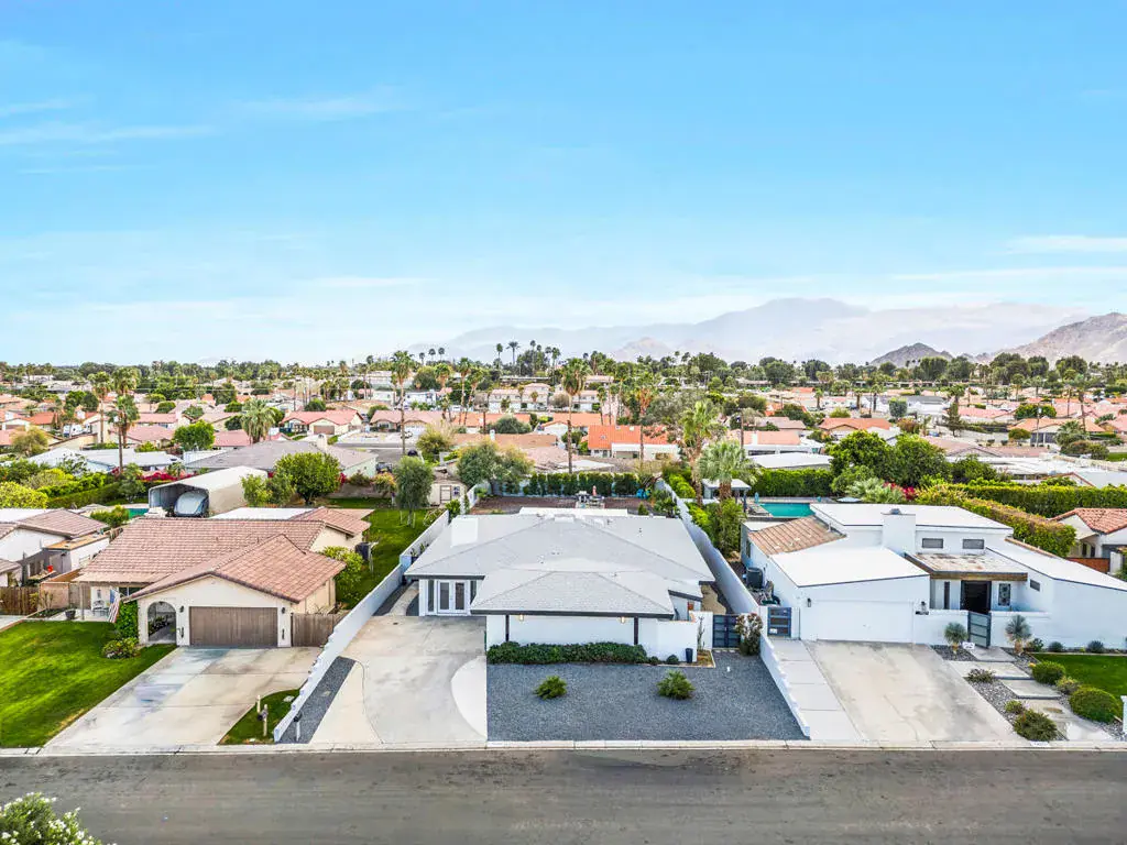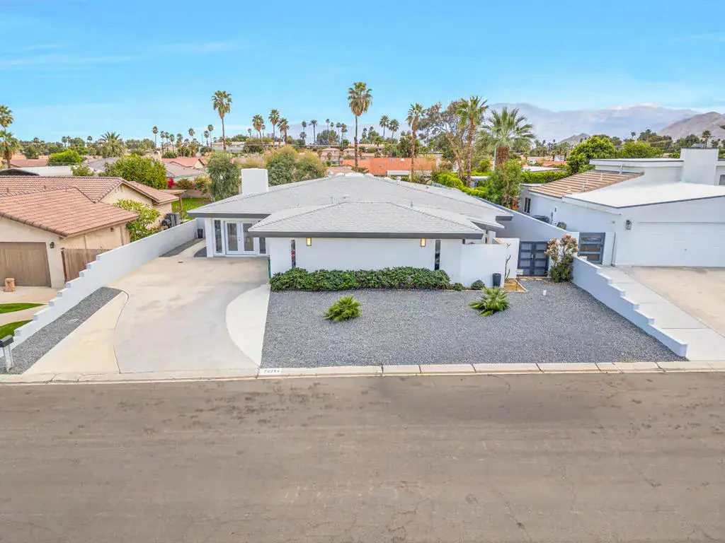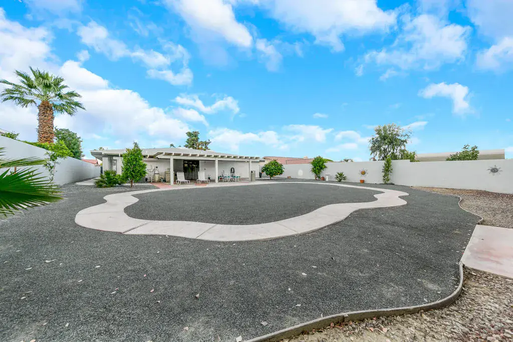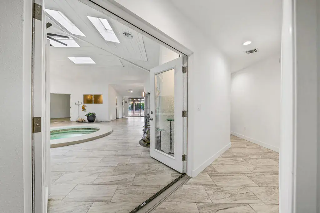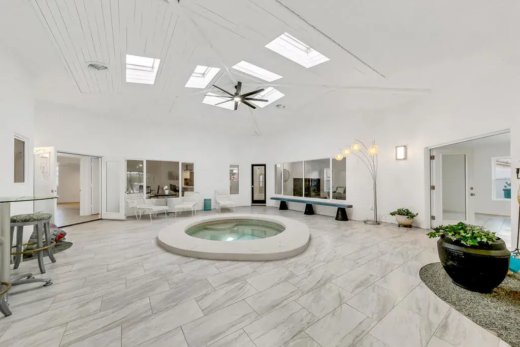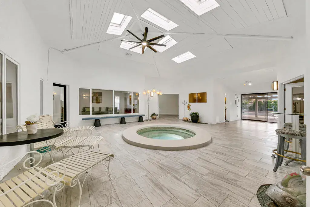 Welcome to this one-of-a-kind 3-bedroom, 3.5-bath custom-built residence, perfectly blending modern luxury with thoughtful design. Every detail of this home has been newly remodeled to offer comfort, style, and functionality–creating the ultimate indoor-outdoor unique desert living experience. NO HOAThe heart of this home is its dramatic interior atrium, featuring a 15-person jacuzzi spa that serves as the focal point for relaxation and entertainment. This indoor-outdoor oasis adds an additional 1,000 sq. ft. of luxurious living space.NEW chef’s kitchen with beautiful cabinetry, modern appliances, and sleek finishesNEWly renovated bathrooms with premium fixtures and tile workAll NEW exterior windows for abundant natural light and energy efficiencyNEW tile flooring throughout for a clean, contemporary aestheticSpectacular NEW atrium skylights that brighten and warm the central living areaNEW custom-built side security gates for added privacy and peace of mindThree NEW French doors opening to serene outdoor spacesCommercial-grade large electrical panel for durability and future expansionFreshly painted exterior and interior–move-in ready!Outdoor shower–perfect for cooling off after enjoying the outdoorsLow-maintenance desert landscaping in both front and backyardsSeparate laundry room with ample storage and functionalitySpacious bedrooms including a huge primary suite featuring a walk-in closet that feels like a boutiqueEach bedroom enjoys no shared walls for exceptional privacy and opens directly to the stunning atrium. One of the three bedrooms can easily serve as a private in-law suite with its own entrance.The expansive 13,000 sq. ft. double-long backyard offers endless possibilities–ideal for an ADU, pickleball court, pool or all three! Enjoy the freedom to tailor this space to your lifestyle needs.The finished two-car garage includes a dedicated storage room, perfect for tools, hobbies, or organization.Built to last, this home features 2×6 perimeter construction–providing superior durability, insulation, and longevity. It’s a home designed for decades of enjoyment and peace of mind.Every inch of this property showcases quality, creativity, and care. From the luxurious spa atrium to the expansive backyard, this home is a true masterpiece.The neighboring property is also for sale. Add a gate between the two and the options are limitless! *The Third bedroom (den to bedroom) was not permitted, but is to code & 1.5 bathrooms