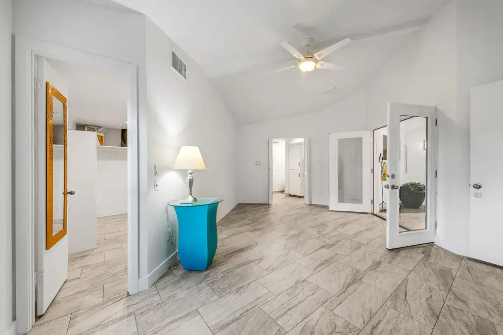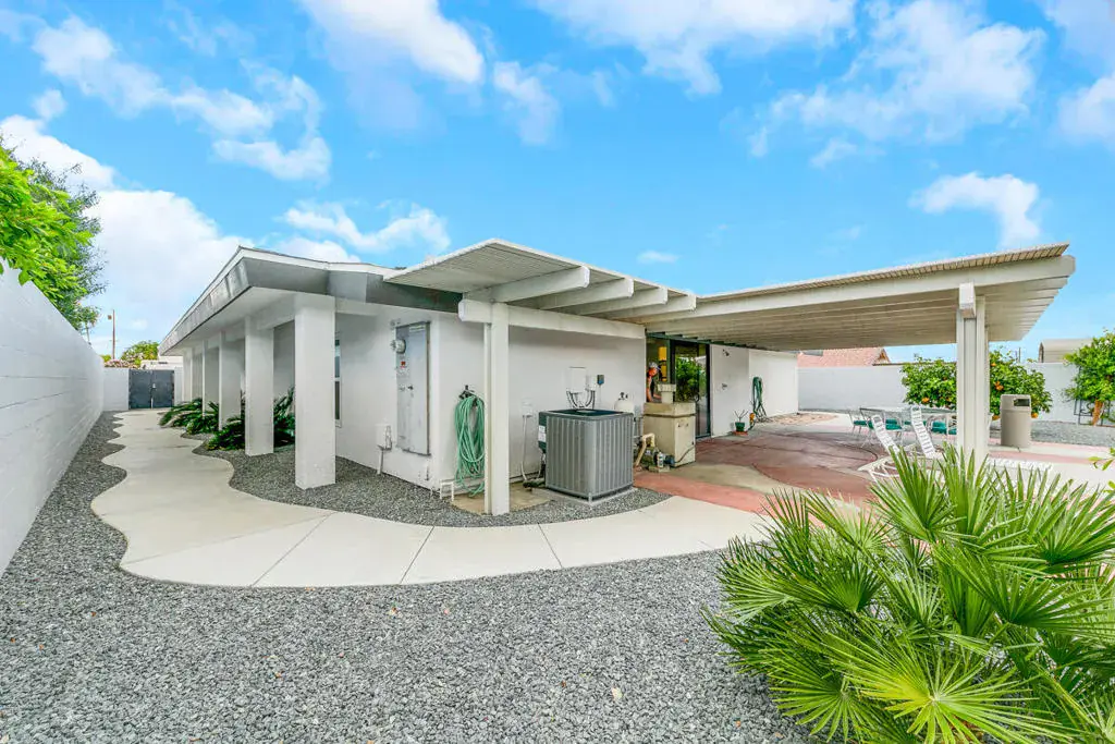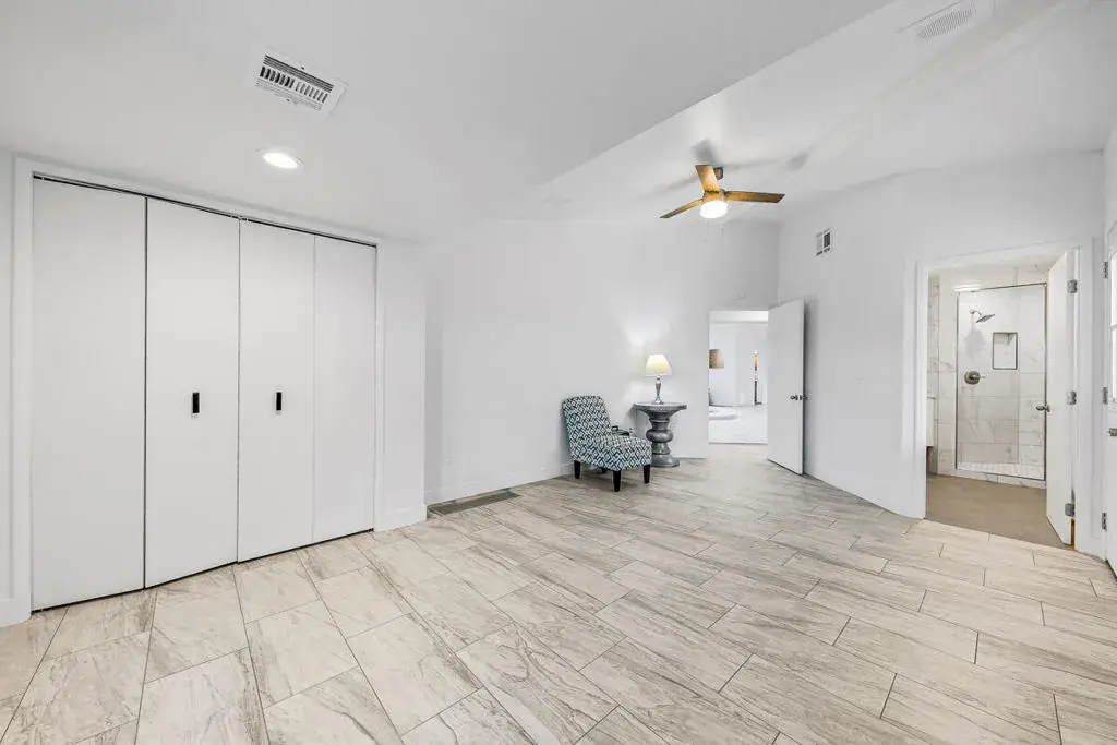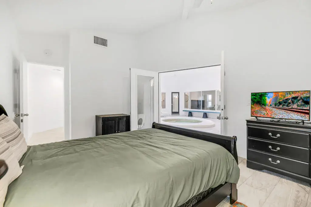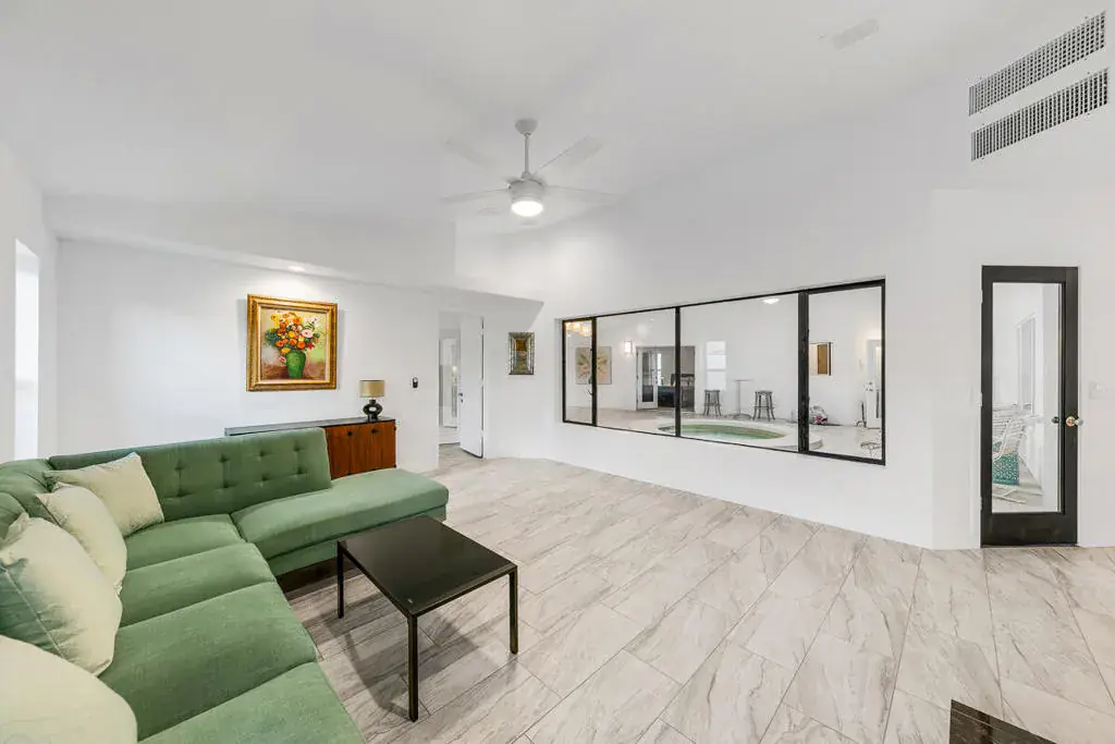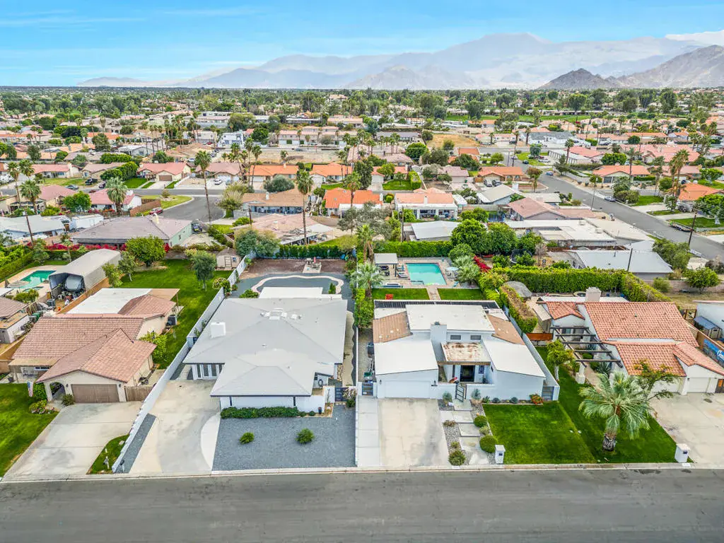 Welcome to this one-of-a-kind 3-bedroom, 3.5-bath custom-built residence, perfectly blending modern luxury with thoughtful design. Every detail of this home has been newly remodeled to offer comfort, style, and functionality–creating the ultimate indoor-outdoor unique desert living experience. NO HOAThe heart of this home is its dramatic interior atrium, featuring a 15-person jacuzzi spa that serves as the focal point for relaxation and entertainment. This indoor-outdoor oasis adds an additional 1,000 sq. ft. of luxurious living space.NEW chef’s kitchen with beautiful cabinetry, modern appliances, and sleek finishesNEWly renovated bathrooms with premium fixtures and tile workAll NEW exterior windows for abundant natural light and energy efficiencyNEW tile flooring throughout for a clean, contemporary aestheticSpectacular NEW atrium skylights that brighten and warm the central living areaNEW custom-built side security gates for added privacy and peace of mindThree NEW French doors opening to serene outdoor spacesCommercial-grade large electrical panel for durability and future expansionFreshly painted exterior and interior–move-in ready!Outdoor shower–perfect for cooling off after enjoying the outdoorsLow-maintenance desert landscaping in both front and backyardsSeparate laundry room with ample storage and functionalitySpacious bedrooms including a huge primary suite featuring a walk-in closet that feels like a boutiqueEach bedroom enjoys no shared walls for exceptional privacy and opens directly to the stunning atrium. One of the three bedrooms can easily serve as a private in-law suite with its own entrance.The expansive 13,000 sq. ft. double-long backyard offers endless possibilities–ideal for an ADU, pickleball court, pool or all three! Enjoy the freedom to tailor this space to your lifestyle needs.The finished two-car garage includes a dedicated storage room, perfect for tools, hobbies, or organization.Built to last, this home features 2×6 perimeter construction–providing superior durability, insulation, and longevity. It’s a home designed for decades of enjoyment and peace of mind.Every inch of this property showcases quality, creativity, and care. From the luxurious spa atrium to the expansive backyard, this home is a true masterpiece.The neighboring property is also for sale. Add a gate between the two and the options are limitless! *The Third bedroom (den to bedroom) was not permitted, but is to code & 1.5 bathrooms