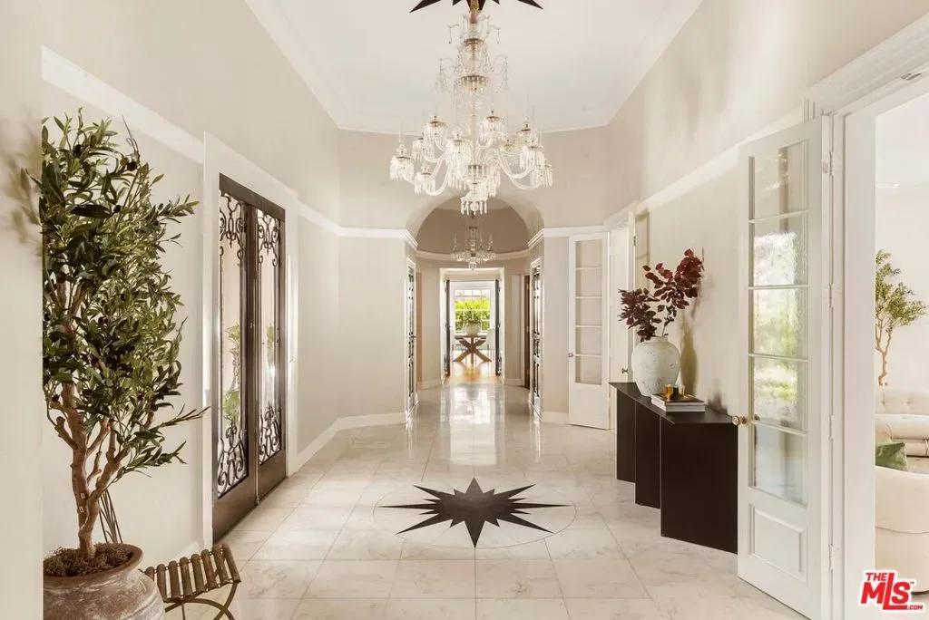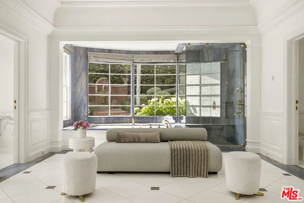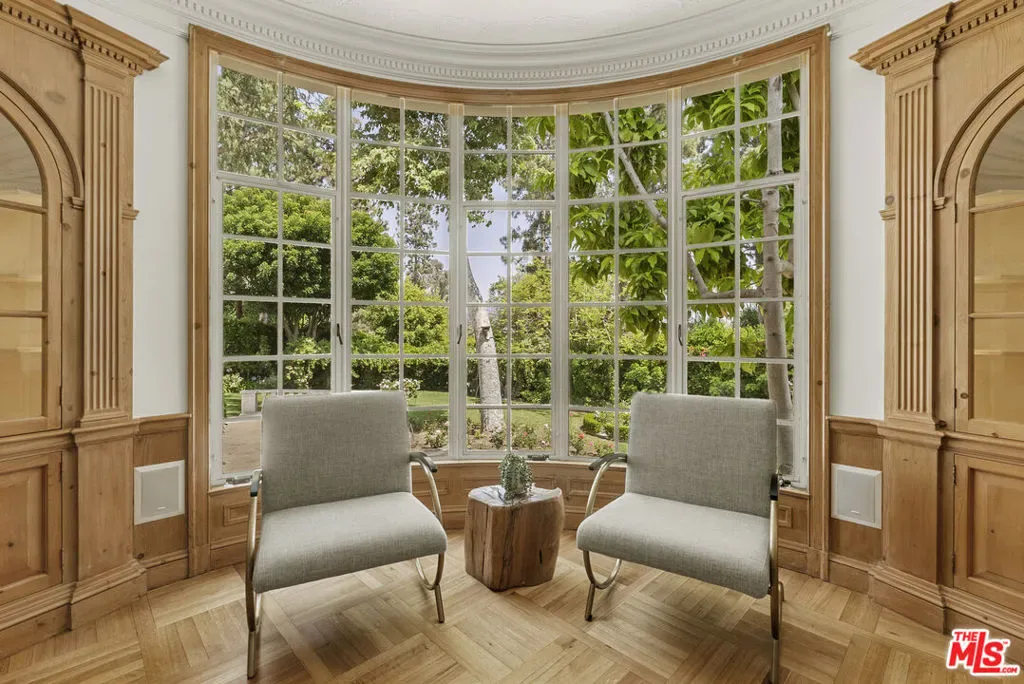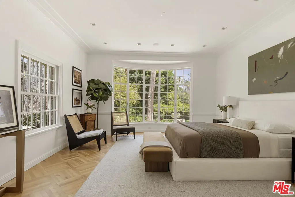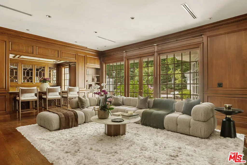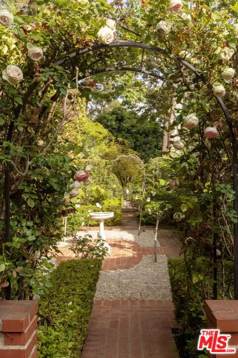 Set behind double gates in one of the most coveted pockets of Beverly Hills – North of Sunset, just behind the iconic Beverly Hills Hotel – this extraordinary estate offers both pedigree and privacy on a rare, nearly one-acre parcel. Designed by Paul R. Williams for Mrs. John Landis, the Colonial Revival home reflects his signature elegance, blending classic proportions with a warm, livable layout that opens effortlessly to the gardens. Flooded with natural light, the interiors feel open and airy, with French doors and expansive windows framing views of brick walkways, a lozenge-shaped pool, and an elegant cabana complete with bath, kitchen, and built-in BBQ. A grand marble entry hints at the refined detailing throughout. Lush gardens, mature trees, and a picturesque gazebo create a series of intimate moments across the estate, offering a sense of escape that feels worlds away. From the wood-paneled dining room with curved bay windows to the inviting breakfast room, every space reflects timeless craftsmanship. In addition to the main residence, the property includes a charming separate guest suite along with two staff rooms – ideal for visitors, a private office, or support staff. A true estate in every sense – majestic yet inviting, private yet perfectly situated – tucked away just moments from the finest restaurants, shops, and cultural landmarks of Beverly Hills, yet offering the serenity of a world apart.