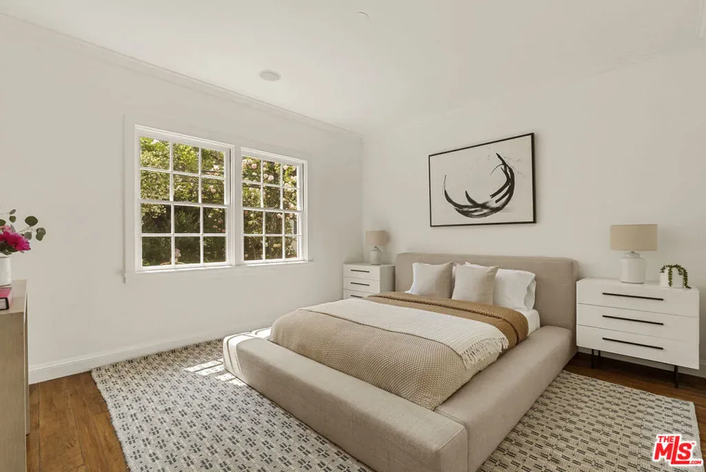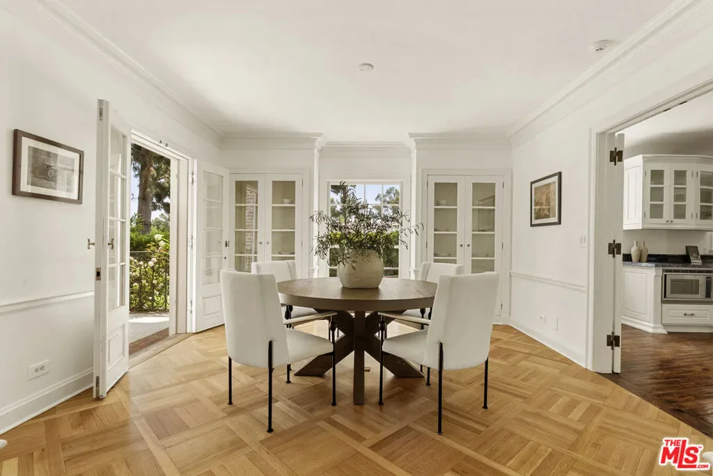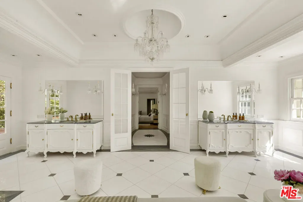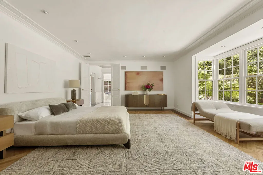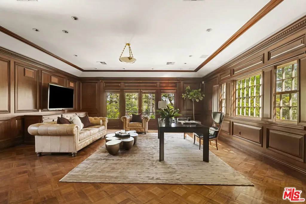 Set behind double gates in one of the most coveted pockets of Beverly Hills – North of Sunset, just behind the iconic Beverly Hills Hotel – this extraordinary estate offers both pedigree and privacy on a rare, nearly one-acre parcel. Designed by Paul R. Williams for Mrs. John Landis, the Colonial Revival home reflects his signature elegance, blending classic proportions with a warm, livable layout that opens effortlessly to the gardens. Flooded with natural light, the interiors feel open and airy, with French doors and expansive windows framing views of brick walkways, a lozenge-shaped pool, and an elegant cabana complete with bath, kitchen, and built-in BBQ. A grand marble entry hints at the refined detailing throughout. Lush gardens, mature trees, and a picturesque gazebo create a series of intimate moments across the estate, offering a sense of escape that feels worlds away. From the wood-paneled dining room with curved bay windows to the inviting breakfast room, every space reflects timeless craftsmanship. In addition to the main residence, the property includes a charming separate guest suite along with two staff rooms – ideal for visitors, a private office, or support staff. A true estate in every sense – majestic yet inviting, private yet perfectly situated – tucked away just moments from the finest restaurants, shops, and cultural landmarks of Beverly Hills, yet offering the serenity of a world apart.