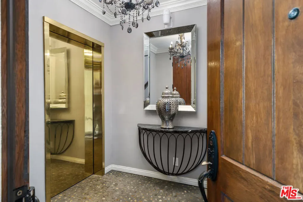 Tucked away in the prestigious hills of Beverly Hills, this private hillside retreat embodies refined luxury and timeless sophistication. Surrounded by lush greenery in the coveted Benedict Canyon area, this elegant estate offers a serene escape just minutes from world-class shopping, dining, and entertainment.Step inside to discover grand living spaces filled with natural light, highlighted by a stately limestone fireplace, a formal dining room perfect for entertaining, and a full-service bar. The gourmet kitchen is a chef’s dreamequipped with top-tier appliances and designer finishes. Glide between levels in the striking golden elevator, adding a touch of glamour to everyday living.The primary suite is a sanctuary of comfort, featuring a cozy fireplace, expansive walk-in closet, and a spa-inspired bathroom with luxurious finishes. Outdoor living is equally exceptional relax by the heated pool surrounded by mature landscaping and manicured gardens, creating the perfect backdrop for quiet mornings or evening gatherings.This home is also outfitted with a premium surround sound system throughout, ensuring the ambiance matches your every mood. Ideal for high-profile buyers seeking privacy, tranquility, and elegance in one of L.A.’s most sought-after neighborhoods.