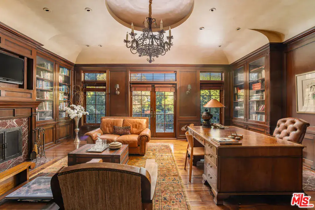Steeped in Old Hollywood glamour, this extraordinary Beverly Hills estate is more than a home; it’s a living piece of cinematic history. Once occupied by Harry Warner, co-founder of Warner Bros., this Tudor-style masterpiece has hosted Hollywood royalty, global dignitaries, and some of the most legendary figures of the past century. Adding to its mystique, Marilyn Monroe was rumored to have stayed in the guesthouse, making this estate a true icon of Los Angeles’ golden era. Set on a 1.15-acre flat lot with rare street-to-street access, the property offers unparalleled privacy behind three gated entrances. The meticulously landscaped grounds unfold like a private oasis, featuring a north-south championship tennis court, a serene grotto pool and spa, a koi pond framed by lush gardens and romantic fountains, and an expansive lawn perfect for grand entertaining. The charming guesthouse, steeped in its own storied past, houses the a guest suite, offering a private retreat for visitors. Inside, 12,000 square feet of refined luxury blend the romance of Old Hollywood elegance with modern comforts. Exposed rough-hewn beams, intricate hand-carved woodwork, and imported French hardwood floors create an ambiance of warmth and authenticity. The grand arched doorways lead to six opulent bedroom suites in the main residence, alongside an intimate library lounge, billiards room, state-of-the-art screening room, and private fitness center. A professional-grade country kitchen serves as the heart of the home, designed for both intimate family moments and large-scale entertaining. From the cobblestone driveway and porte-cochre to the towering heritage trees and manicured gardens, every detail of this estate reflects unparalleled craftsmanship and prestige. This is not just a residence; it is a rare opportunity to own a true Hollywood legacy, an architectural treasure that continues to captivate and inspire.