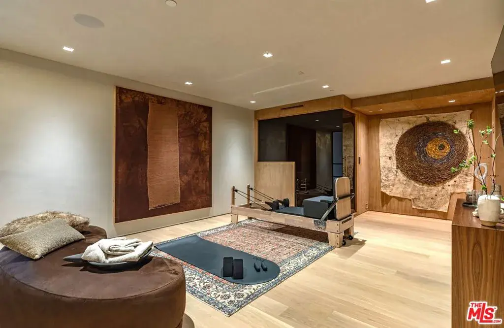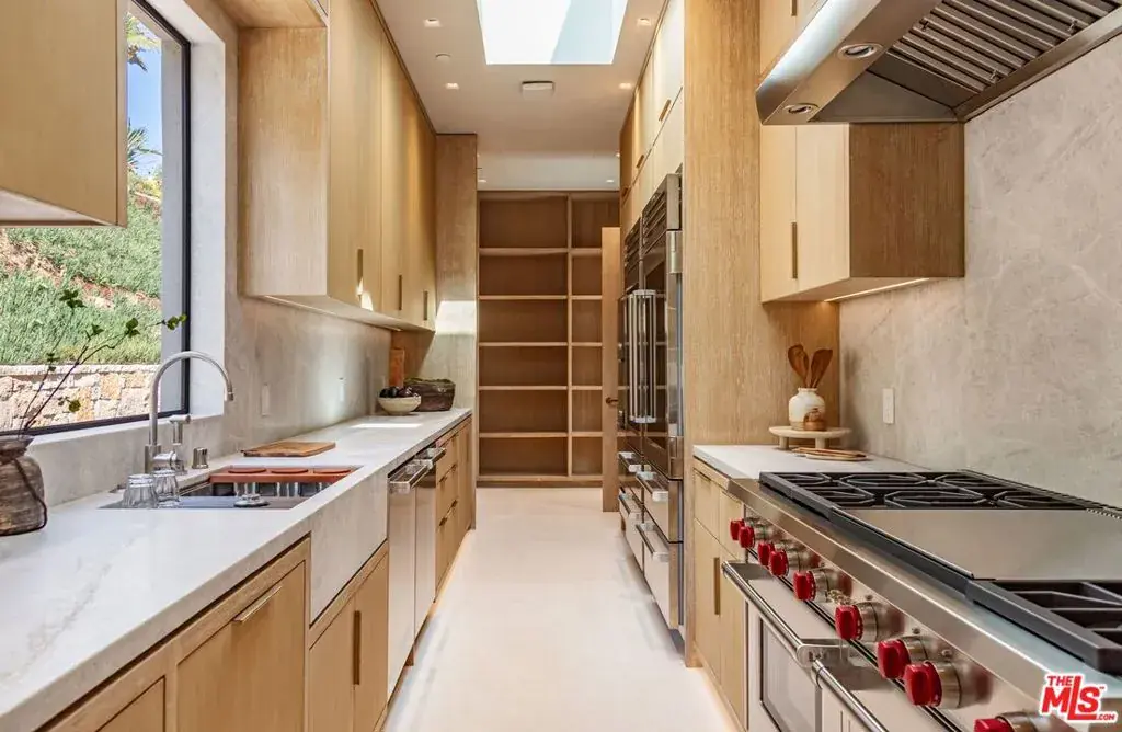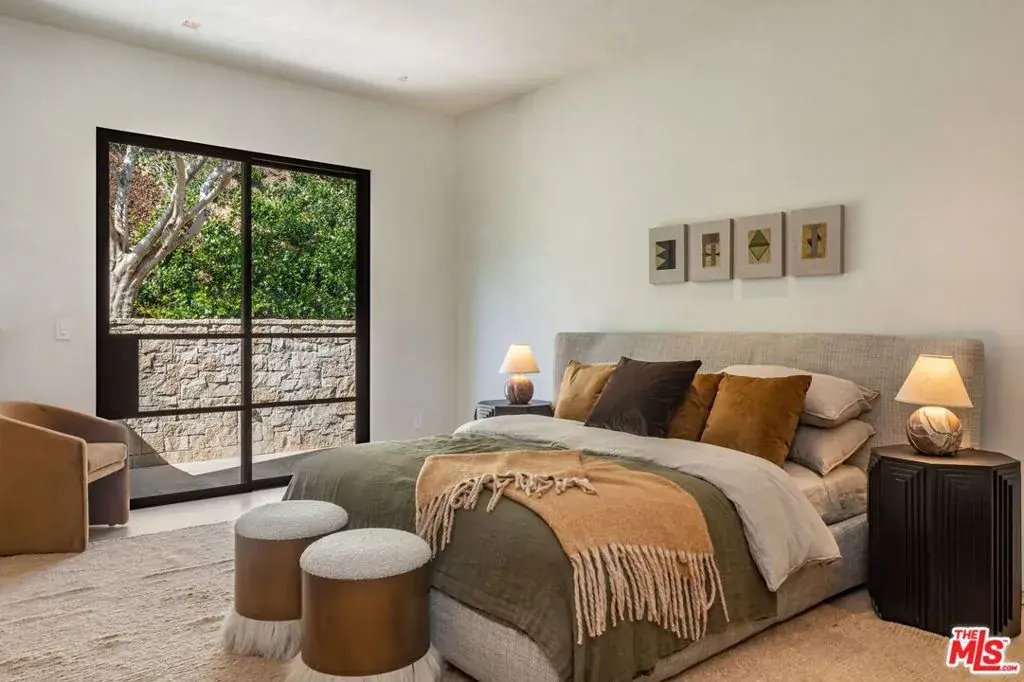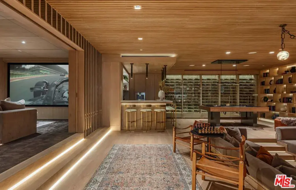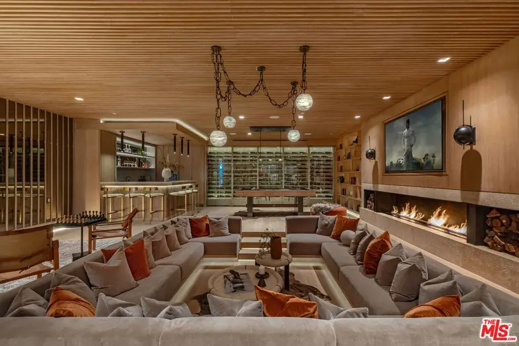 Experience timeless elegance in the exclusive Trousdale neighborhood of Beverly Hills. This organic estate, designed by renowned designer Charles Infante, weaves his experience in film to create a narrative fit for entertainment and curated for elevated living in every possible way. Spanning approx. 10,000 square feet, this architectural masterpiece showcases rich natural tones with Portuguese limestone, Italian Navona travertine, white oak paneling and floors, organic custom plaster walls, and motorized custom steel windows. Sleek lines perfectly frame cinematic city-to-ocean views. Inside, the main living spaces are open and airy, with walls of glass that fully pocket to create a seamless indoor/outdoor flow to the pool, spa, and patio. The expansive living room, dining area, and both the main and chef’s kitchens are designed for grand scale living and entertaining. Four ensuite bedrooms offer refined comfort, in addition to a spacious, tranquil primary suite with motorized walls of glass, panoramic city views, and a spa-style bath. Luxurious amenities include a sleek gym with sauna, a temperature-controlled wine display, and an epic entertainment lounge with a sunken conversation pit, full bar, and state-of-the-art theater. The fully finished showcase garage features a car turntable; perfect for showcasing your collection. This is your moment to live above it all, in a home that sets the new standard for Trousdale living.