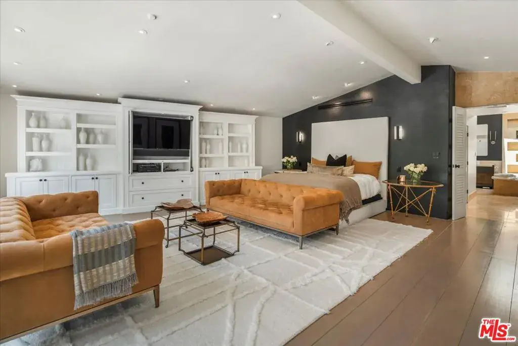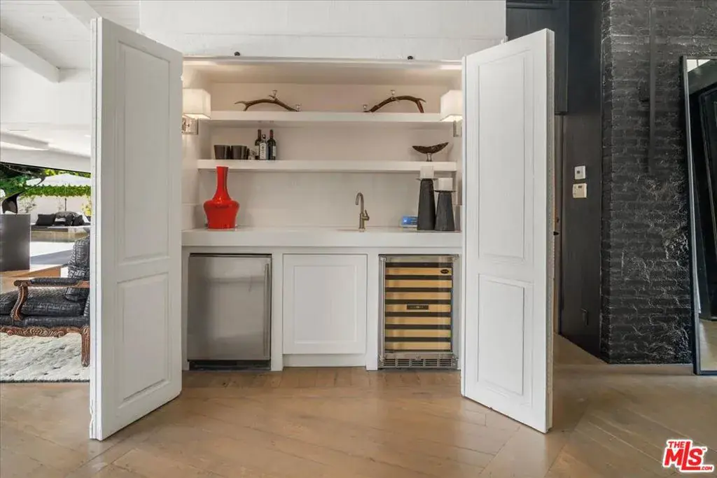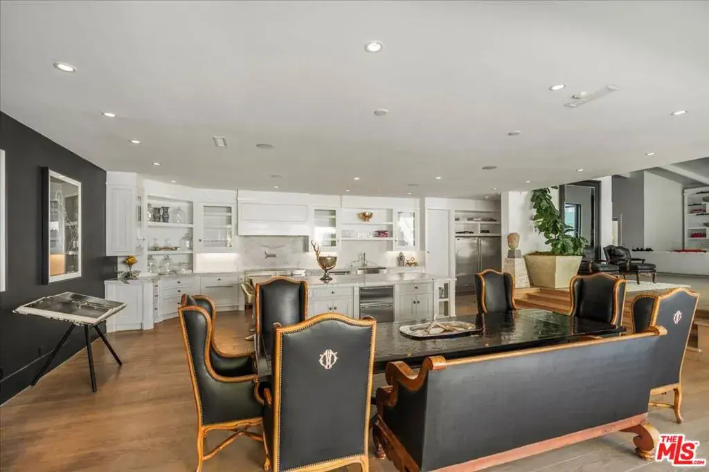 The Weinhart Estate. For the first time in nearly three decades, this rare mid-century jewel comes to market. Set on an elevated corner lot in the tranquil hills above the flats, the home offers the perfect blend of privacy, pedigree, and location. Clean mid-century lines, soaring beamed ceilings, and walls of glass capture panoramic canyon views while seamlessly merging indoor and outdoor living. The residence unfolds with a dramatic pivoting front door, expansive living spaces anchored by a striking stone fireplace, and a 40-foot chef’s kitchen outfitted with a 12-foot island, dual Wolf induction ranges, Sub-Zero refrigeration, and book-matched statuary marble. A marble-topped wet bar, sophisticated den, and thoughtfully designed entertaining areas reflect timeless mid-century glamour. Upstairs, the skylit primary suite features a private balcony, marble fireplace, dual walk-in closets, and a spa-like bath. Additional guest suites echo the home’s refined aesthetic. Outside, lush landscaping surrounds a Pebble-finish pool, built-in barbecue, and multiple terraces for alfresco dining and lounging. An extraordinary opportunity to own an authentic piece of mid-century style in one of Beverly Hills’ most coveted settings just moments from the iconic Beverly Hills Hotel and the world-renowned shops and dining of Rodeo Drive.