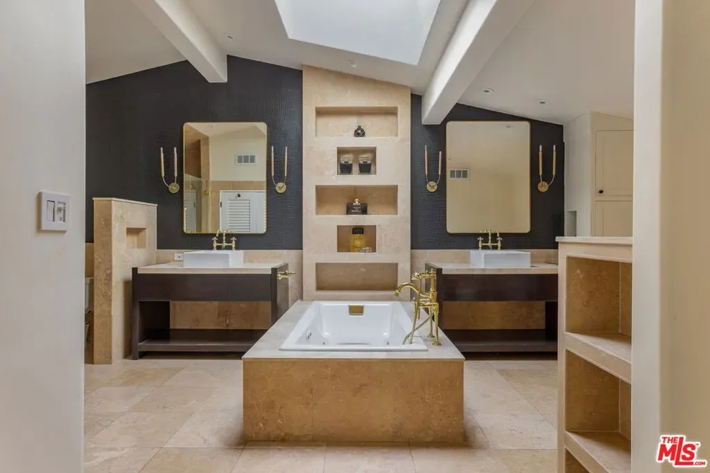 Perched on a quiet street just above the Flats, this architecturally interesting mid-century modern residence blends warmth, openness, and scale; moments from the heart of Beverly Hills. Strong architectural lines, beamed ceilings, and light-filled interiors create an inviting sense of volume throughout. A dramatic pivot entry opens to expansive living spaces anchored by a stone fireplace and designed for effortless indoor-outdoor living. The kitchen centers around a 12-foot island with dual Wolf induction ranges, Sub-Zero refrigeration, and book-matched statuary marble, complemented by a marble wet bar and adjoining den for more intimate gathering. Upstairs, the skylit primary suite offers a private balcony, fireplace, dual walk-in closets, and a spa-like bath. Additional guest suites continue the home’s cohesive design. Designed for entertaining, the outdoor areas include a Pebble-finish pool, built-in barbecue, generous lawn, and multiple areas for dining and lounging. A refined mid-century modern in one of Beverly Hills’ most coveted enclaves.