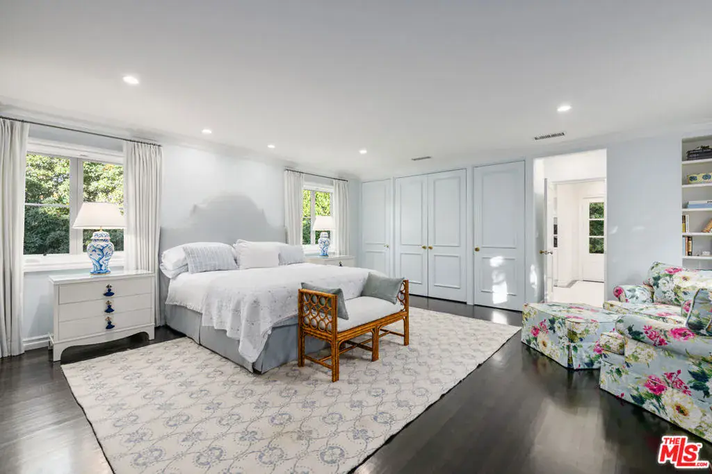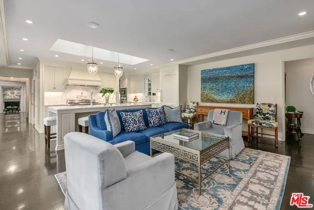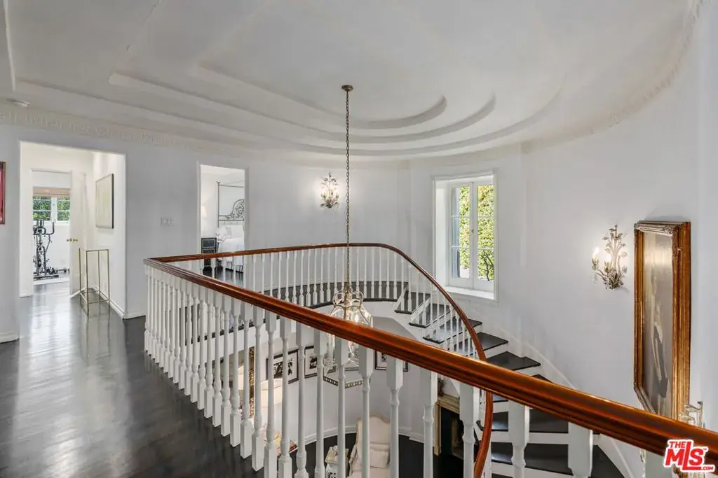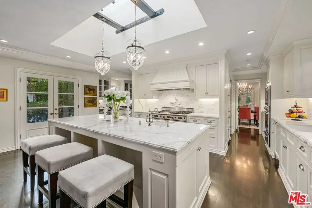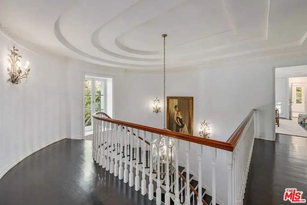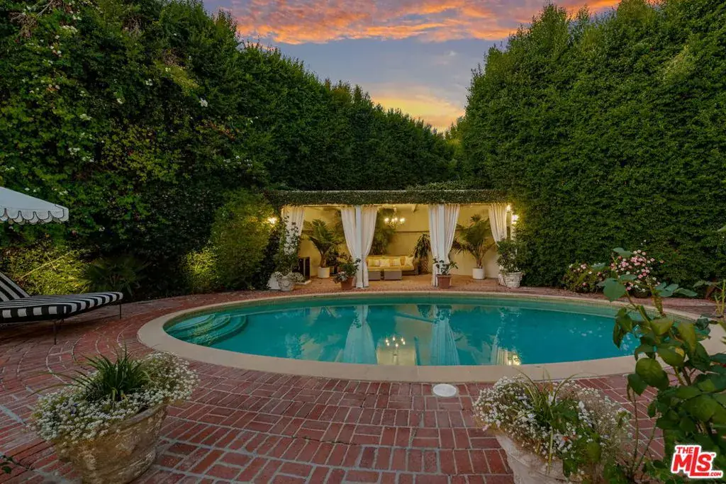 Located on lower Benedict Canyon Drive in Beverly Hills Proper is this two-story, five-bedroom, six-bath residence, artfully designed and built in 1929 with later remodeling done by esteemed architect John Elgin Woolf. One of the few remaining Beverly Hills homes featuring Woolf’s Hollywood Regency stylings: his signature oval windows, large architectural doors, dentil moldings, hardwood flooring and French windows and doors.The house is sited on an expansive, private-feeling, gated, walled, and maturely wooded lot. The floorplan is classic and has easy flow from room-to-room and to the outdoors. The two-story foyer sets a graceful tone with its fireplace, sitting area and sweeping staircase. The formal living room with its tall ceiling, built-in bookcases and stately fireplace opens through French doors to the backyard. The formal dining room is perfect for either a large dinner party or a more intimate gathering. The kitchen and family room are a chef’s and entertainer’s dream. This bright, skylit area opens to the backyard and serves as the casual wing of the house. Clad in Carrara marble and outfitted with top-tier appliances, the kitchen features a center island with seating and a multitude of built-ins. There’s a bar area, a butler’s pantry and temperature-controlled Sub-Zero wine storage. Connecting seamlessly to the kitchen is the family room area with built-in bookcases and a fireplace. It also has a breakfast niche for informal gatherings and every-day dining. A jewel box of a den/study is warmed by yet another fireplace and serves well as a library or home office. Two guest bedrooms, one of which is currently used as a music room, both have an associated bath. A laundry room, a powder bath and convenient direct-access to the garage complete the first level.Upstairs feels expansive with its three sunbathed bedrooms. The primary suite has a lovely sitting area and a luxurious, recently redone primary bath clad in stunning marble. It features a large soaking tub, a separate shower, dual vanities and a Juliet balcony overlooking the grounds. Closet space is plentiful here with both a walk-in closet and a wall of wardrobe spaces. The two additional bedrooms are large and ensuite. An additional flexible space can serve as a computer station or homework area.The grounds are private and park-like, perfect for entertaining under the Southern California sun and stars. The backyard includes a covered cabana overlooking the oval-shaped pool. There are brick patios for outdoor lounging and dining. There are tranquil grassy expanses ideal for swings and other activities for children. The driveway offers off-street parking. Beverly Hills Police, Fire and Beverly Hills Schools. Moments to Rodeo Drive and to all the shopping and dining Beverly Hills has to offer. Near to Century City, to Westwood and to UCLA.