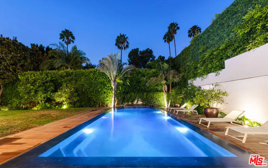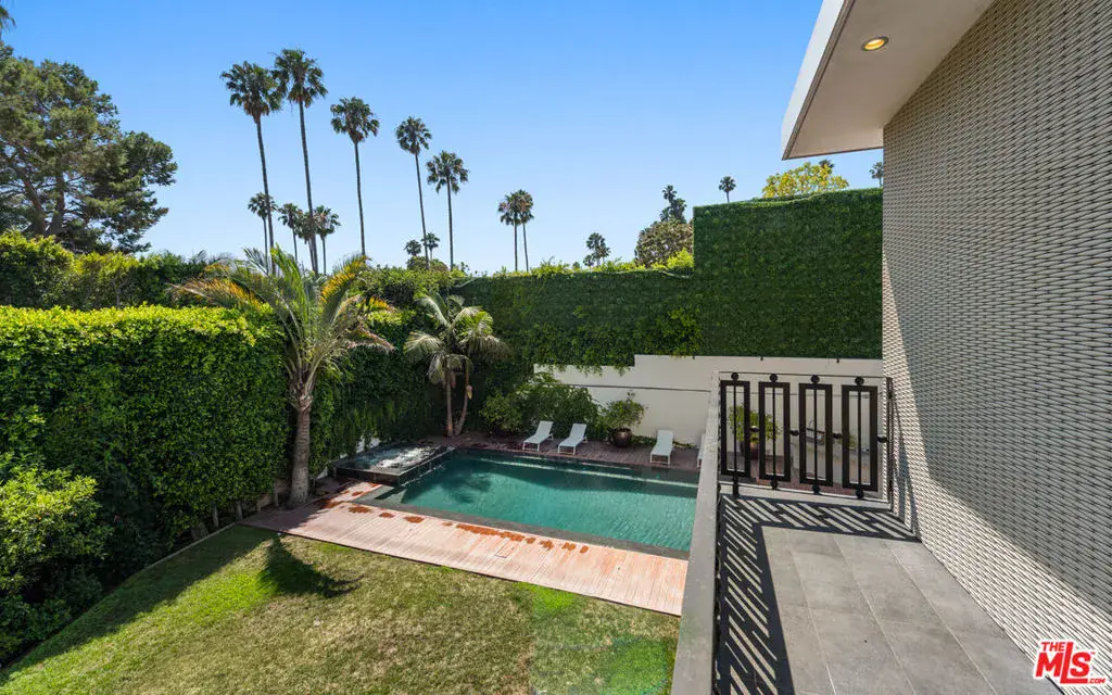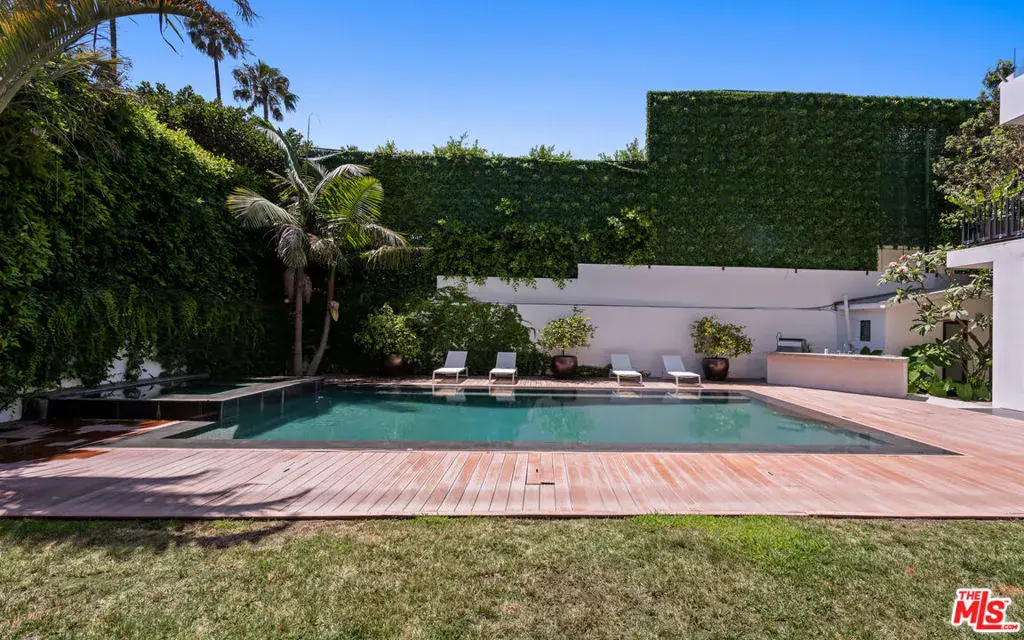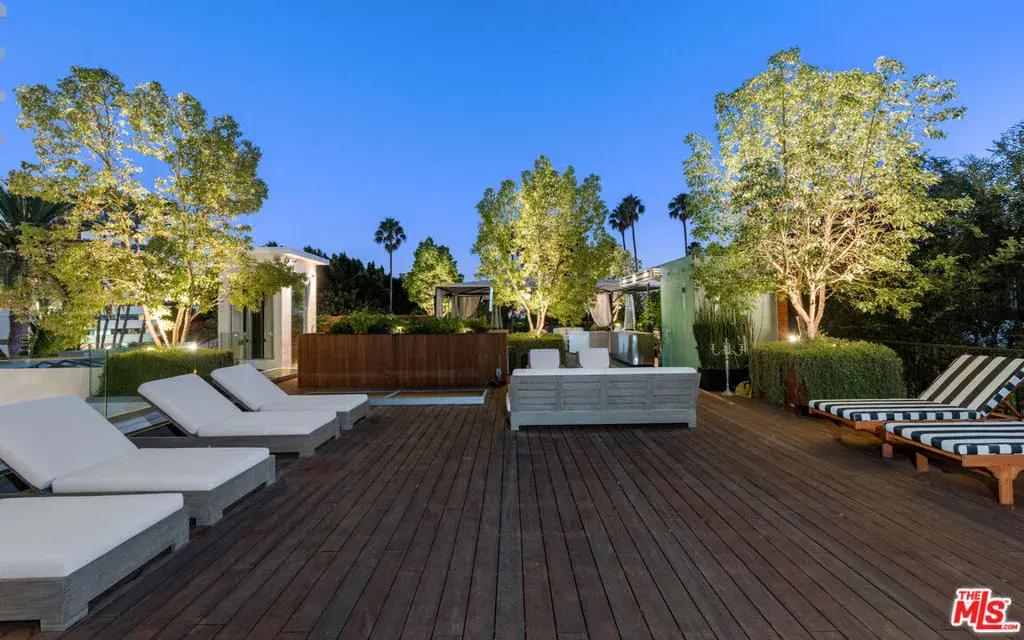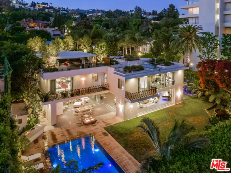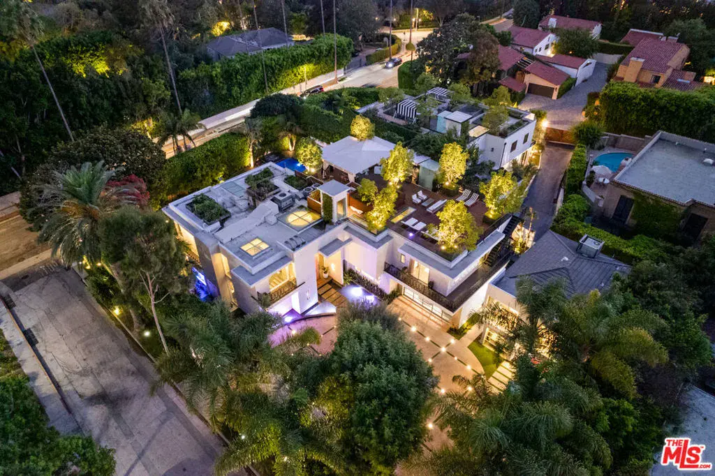 Available fully furnished and turnkey for short term monthly and longer term leases! Incredible fully furnished lease in a prime location. Super luxury personal home of experienced real estate and development family in residential and commercial many years. Fully gated, great dual entry motor court and parking garage with commercial elevator. Designed with family in mind and fabulous entertaining the home was executed with great care and attention to detail. Incredible rooftop with full kitchen, endless fruit and vegetable gardens, firepit, multiple seating areas and a bathroom, A grand bar to the left with saltwater aquarium, sitting room in front of you, formal dining and floor to ceiling glass wine refrigerator to your right are wrapped in glass and Fleetwood pocket doors which connect you seamlessly to natural light, fresh air, and views of the professionally landscaped grounds. The private yard features a swimmer’s pool surrounded by a wooden deck, spa, lawn, lush koi pond, waterfall, and patio with dining table and fire pit. Step in from the patio to the comfortable family room with fireplace and drop down projection screen and into the gourmet kitchen appointed with Italian cabinetry, massive island, breakfast bar and nook. The rooftop garden deck offers you a cabana lounge with fire pit and al fresco dining area for entertaining or relaxing on warm Southern California nights. The floating staircase takes you up to the lavish guest rooms, highlighted by the dramatic primary suite with its fireplace, drop down big screen, lounge, balcony, expansive walk-in closet, and bath with dual basins, shower, soaking tub, and infrared sauna. Four exquisite additional en suite guest rooms. The main residence is exquisitely appointed, finished with the finest materials, and includes a gymnasium, staff quarters, elevator, and Control Home automation system. Twin guest houses are detached from the main house and feature kitchenette, bedroom, and bath, the larger of the two includes a separate living area. The entire compound features 10,000 sq ft of living spaces on a half acre lot, strategically located in close distance of fine dining such as Boa, Soho House, Lavo, sunset strip and minutes to Rodeo Drive and the Beverly Hills Hotel.