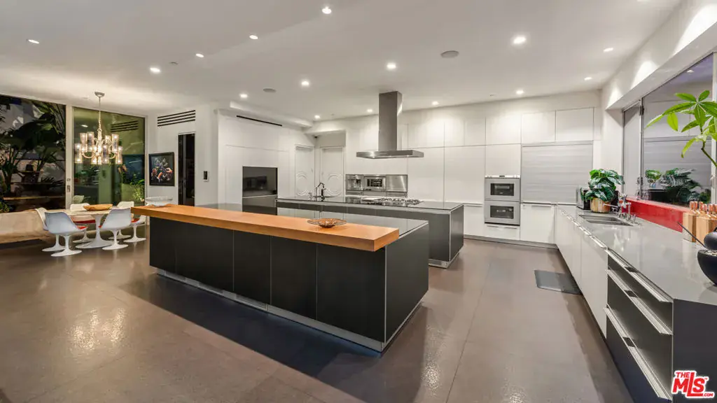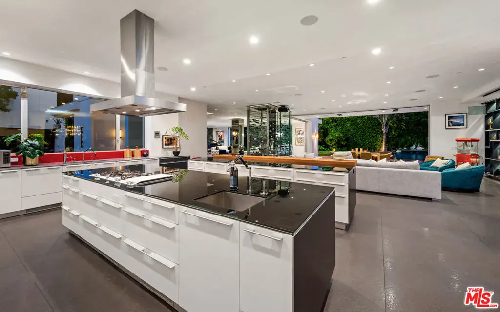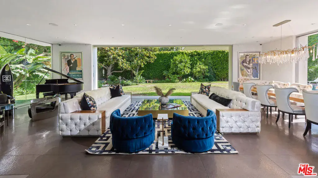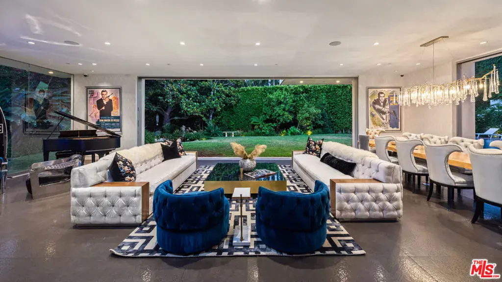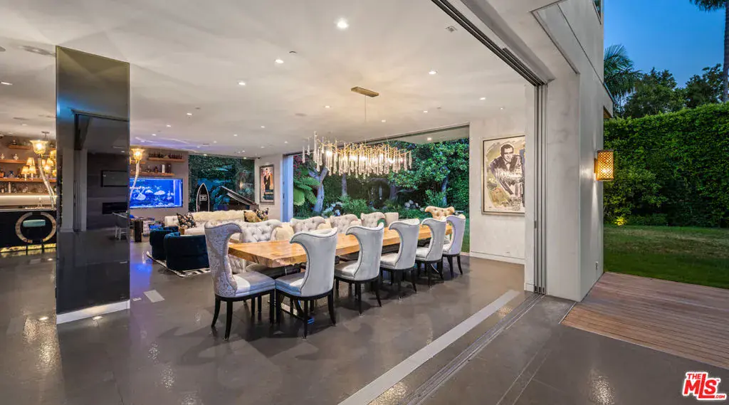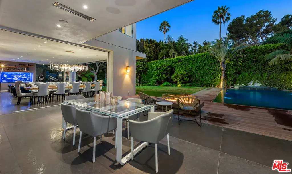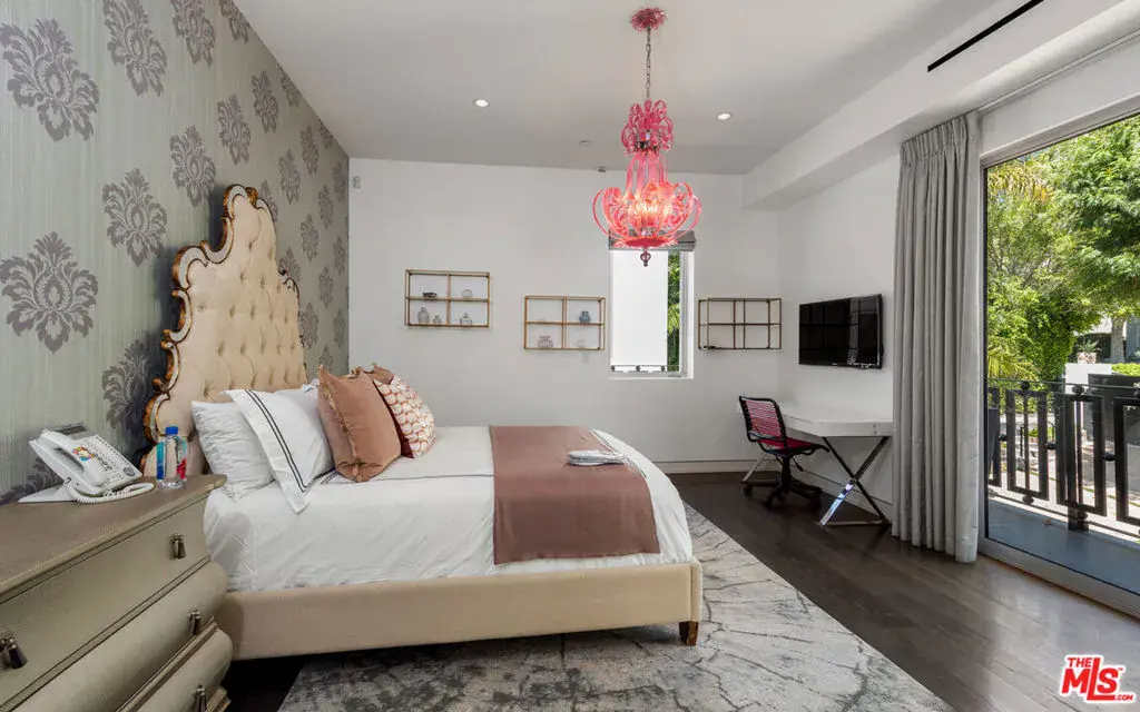 Available fully furnished and turnkey for short term monthly and longer term leases! Incredible fully furnished lease in a prime location. Super luxury personal home of experienced real estate and development family in residential and commercial many years. Fully gated, great dual entry motor court and parking garage with commercial elevator. Designed with family in mind and fabulous entertaining the home was executed with great care and attention to detail. Incredible rooftop with full kitchen, endless fruit and vegetable gardens, firepit, multiple seating areas and a bathroom, A grand bar to the left with saltwater aquarium, sitting room in front of you, formal dining and floor to ceiling glass wine refrigerator to your right are wrapped in glass and Fleetwood pocket doors which connect you seamlessly to natural light, fresh air, and views of the professionally landscaped grounds. The private yard features a swimmer’s pool surrounded by a wooden deck, spa, lawn, lush koi pond, waterfall, and patio with dining table and fire pit. Step in from the patio to the comfortable family room with fireplace and drop down projection screen and into the gourmet kitchen appointed with Italian cabinetry, massive island, breakfast bar and nook. The rooftop garden deck offers you a cabana lounge with fire pit and al fresco dining area for entertaining or relaxing on warm Southern California nights. The floating staircase takes you up to the lavish guest rooms, highlighted by the dramatic primary suite with its fireplace, drop down big screen, lounge, balcony, expansive walk-in closet, and bath with dual basins, shower, soaking tub, and infrared sauna. Four exquisite additional en suite guest rooms. The main residence is exquisitely appointed, finished with the finest materials, and includes a gymnasium, staff quarters, elevator, and Control Home automation system. Twin guest houses are detached from the main house and feature kitchenette, bedroom, and bath, the larger of the two includes a separate living area. The entire compound features 10,000 sq ft of living spaces on a half acre lot, strategically located in close distance of fine dining such as Boa, Soho House, Lavo, sunset strip and minutes to Rodeo Drive and the Beverly Hills Hotel.