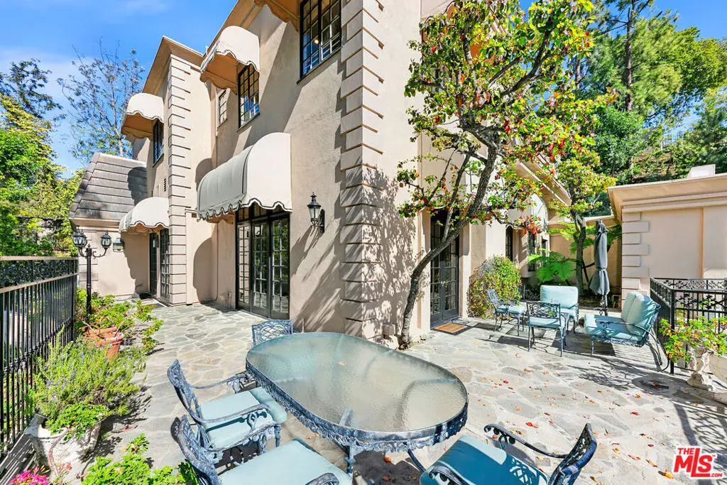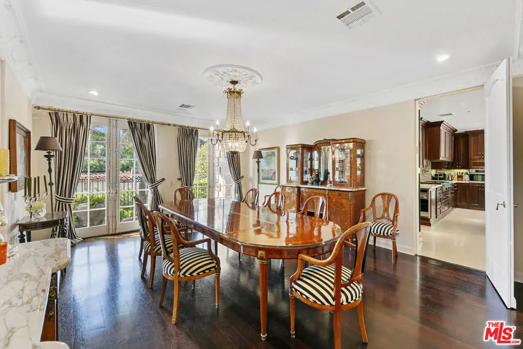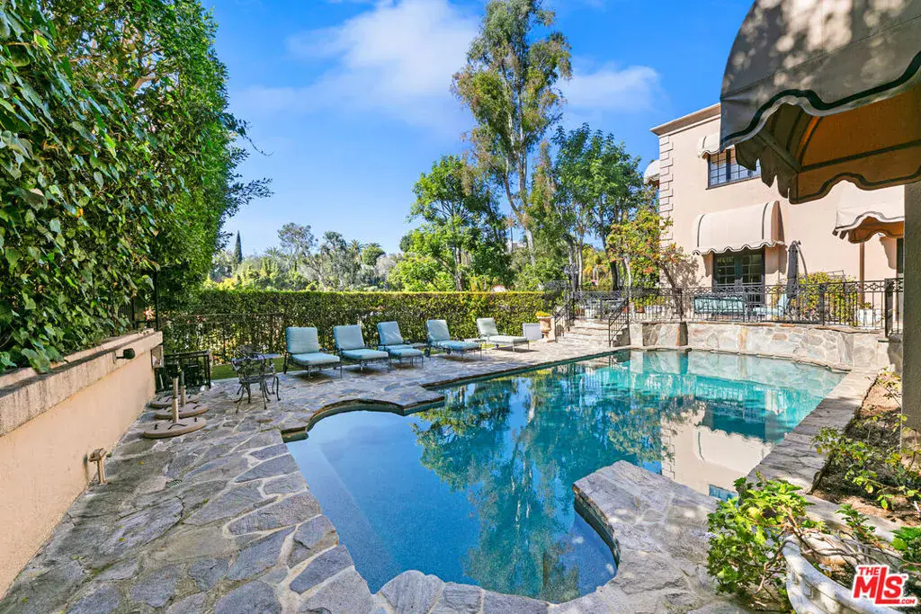 This timeless Regency-style residence seamlessly combines classic elegance with modern luxury, set in one of Beverly Hills’ most coveted locations. The grand entrance, soaring ceilings, and intricate moldings create a refined atmosphere that flows effortlessly throughout the home. The expansive living room extends to the outdoor spaces, offering an ideal setting for both entertaining and relaxation. Adjacent to the living room, you’ll find a cozy library and bar with a fireplace, the perfect retreat for an evening drink or a quiet movie night. The gourmet kitchen is a chef’s dream, featuring top-tier Wolfe and Miele appliances, double ovens, and a warming drawer. French doors from the kitchen open to a private balcony, providing a tranquil escape. Multiple fireplaces throughout the home infuse each room with warmth and charm. The luxurious primary suite is a true sanctuary, complete with dual bathrooms, a vanity, and generous walk-in closets, along with French doors that open to the outdoors for extra privacy and serenity. The home offers six bedrooms, each with its own en-suite bathroom, ensuring comfort and privacy for family and guests. For wellness enthusiasts, there is a fully equipped gym with air conditioning, and an electric car charger adds an extra layer of convenience. Outside, the beautifully landscaped grounds include a pool, a lawn area, and various seating and dining spaces, perfect for both relaxation and entertaining. This exceptional Beverly Hills property provides unparalleled luxury living and offers a rare opportunity to lease and possibly own a home of this caliber in one of the most desirable locations.