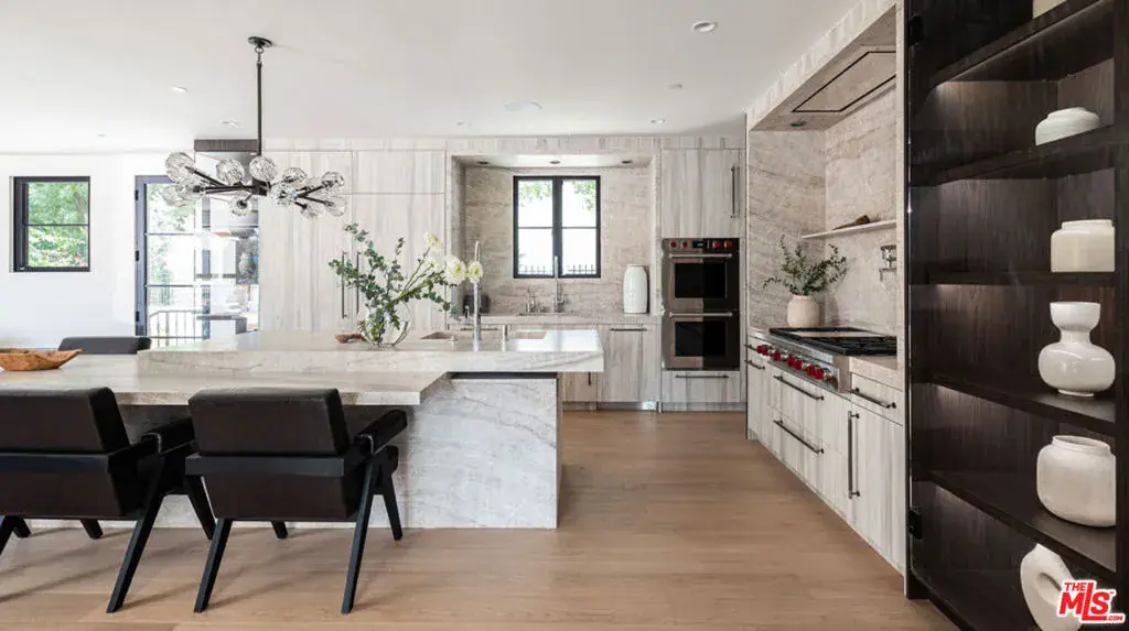 Welcome to Casa Estrella, a fully reimagined transitional Spanish estate set in one of Beverly Hills’ most coveted locations. Rebuilt down to the frame, this 6-bedroom, 9-bathroom residence showcases all-new construction with the finest luxury finishes throughout. The main level offers a bright, open-concept floor plan that seamlessly connects the formal living and dining rooms, private office/library, and expansive family room. At the heart of the home, the chef’s kitchen is appointed with top-of-the-line Wolf appliances, custom stone sinks, bespoke cabinetry, and a generous walk-in pantry thoughtfully designed for both everyday living and elegant entertaining. Upstairs, four ensuite bedrooms include a spectacular primary suite featuring dual spa-inspired baths, separate walk-in closets, and breathtaking city views. Designed for ultimate entertainment and wellness, the lower level boasts a state-of-the-art theater, fully equipped gym, infrared sauna, cold plunge, bar, and temperature-controlled wine cellar. The outdoor grounds are equally impressive, offering a resort-style pool and spa, outdoor kitchen, and beautifully landscaped lounge areas ideal for year-round California living. Additional amenities include a detached guesthouse, five fireplaces, a three-car garage, and a motor court accommodating up to 12 vehicles. Located just one mile from the iconic Beverly Hills Hotel and the world-class shopping and dining of Rodeo Drive, Casa Estrella represents the perfect blend of timeless architecture and modern luxury the epitome of refined Beverly Hills living.