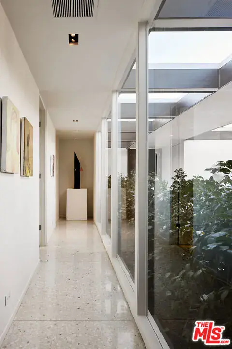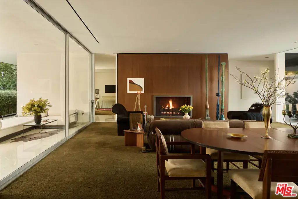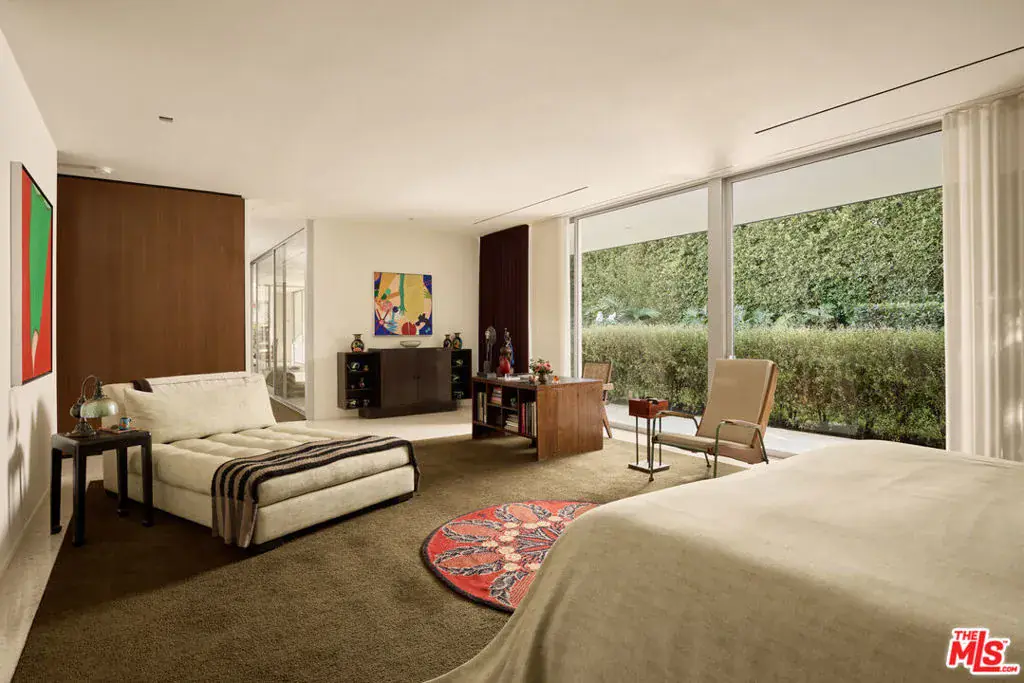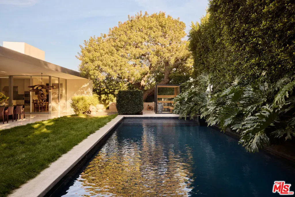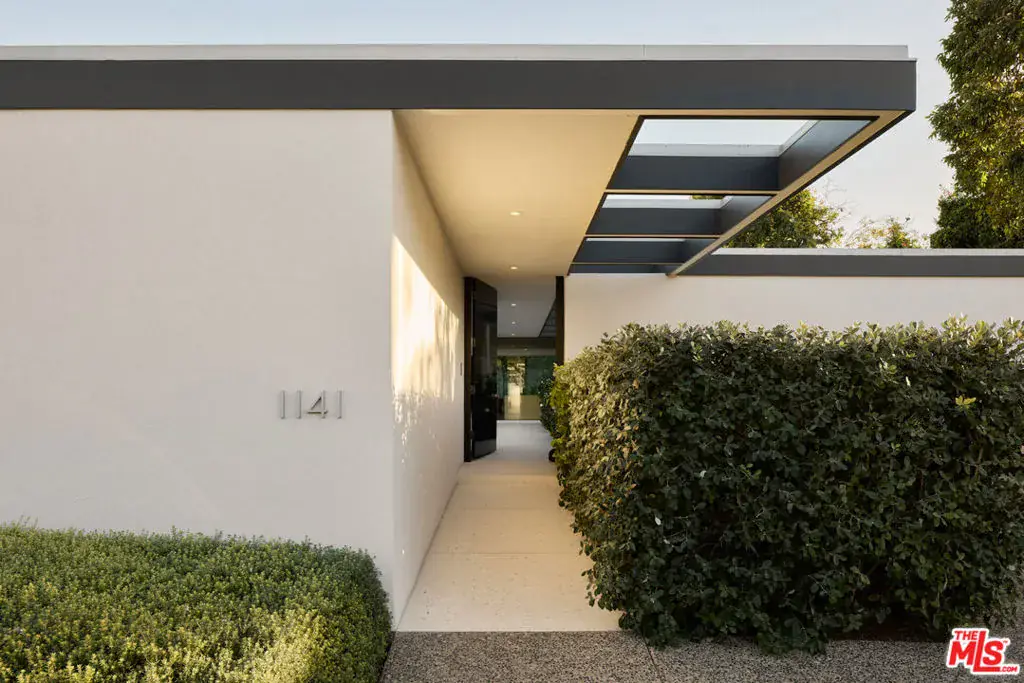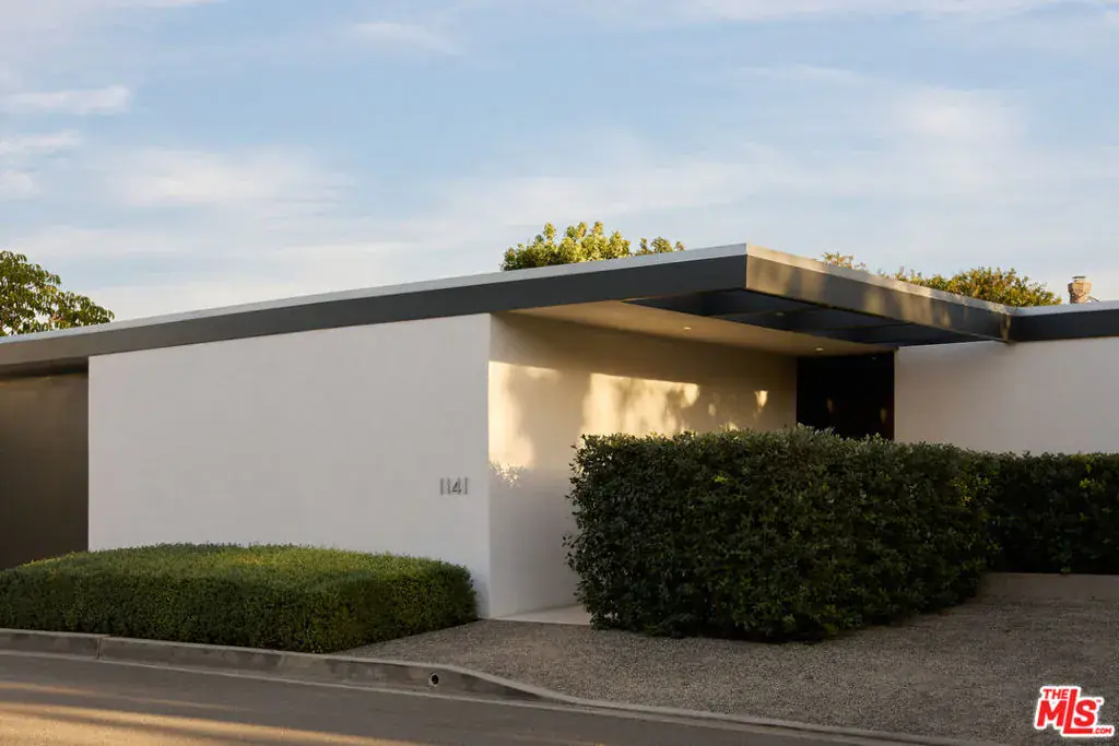 Designed by Donald Polsky in 1960, the Hillman Residence is a mid-century modern home reflecting his work under Richard Neutra. The architecture emphasizes clean lines, functional design, and a strong connection to the landscape. A careful restoration by designer Brad Dunning preserves the home’s original intent while refining its details. Landscape designer Madison Cox shaped the grounds with a restrained plant palette that reinforces the home’s structure, including a courtyard entry softened by Japanese aralia and camellia. A private, gated driveway courtyard provides secure access and supports seamless indoor-outdoor living. The home was featured in Architectural Digest in February 2024.