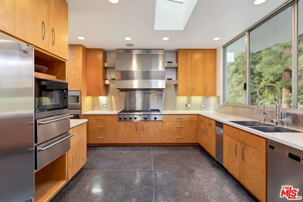 Designed by acclaimed architect Hal Levitt, the Holt House is a rare and historically important example of Southern California mid-century modernism, set within one of Beverly Hills’ most private and tightly held enclaves. The residence is widely regarded as a defining work of its era, recognized for both its architectural significance and enduring relevance.Set behind gates and approached by a long, private drive, the home reveals itself gradually, unfolding through a sequence of intentional, gallery-like spaces. The architecture emphasizes proportion, materiality, and light, with terrazzo floors, expansive glass walls, and dramatic ceiling heights creating interiors that feel both refined and expansive. Natural light is treated as a primary design element, animating the spaces throughout the day.Living and entertaining areas are thoughtfully arranged around a central courtyard, reinforcing a strong indoor-outdoor connection and providing a calm, cohesive spatial experience. The surrounding grounds are landscaped with mature plantings, while a rooftop deck offers open views and quiet moments at sunset. An architectural bridge crossing the pool serves as both a functional connector and a sculptural focal point, linking the private wing to the main living spaces.A separate guest residence accommodates visitors in comfort and privacy, while the primary home remains a secluded retreat, framed by established gardens and mature trees.For those who value architectural authorship, historical importance, and timeless modern design, the Holt House presents a rare opportunity to steward a truly significant work of residential architecture.