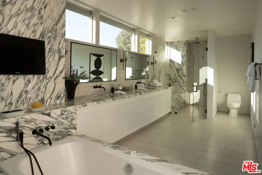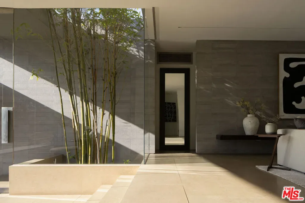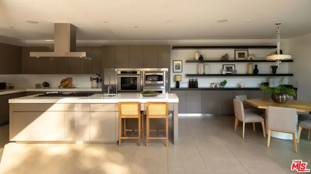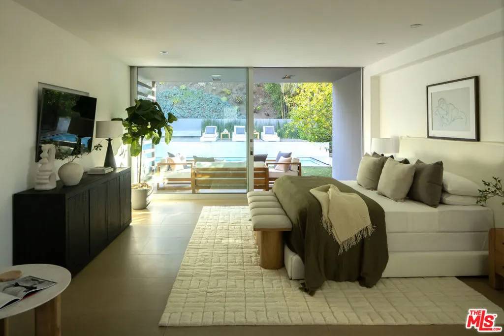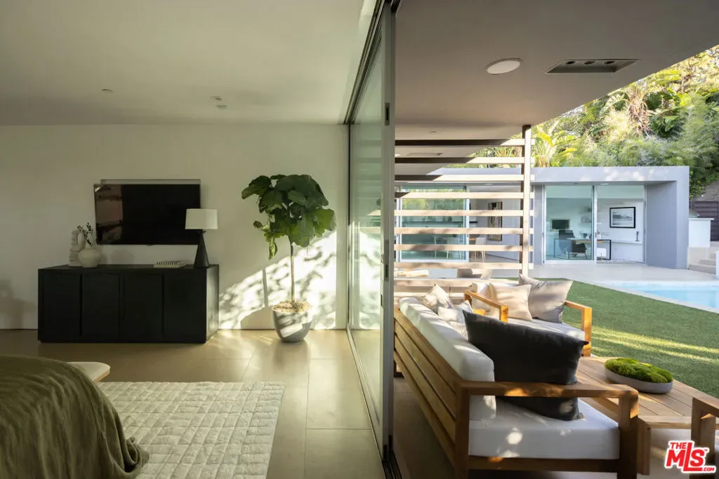 Beyond private gates and an extended motor court, this contemporary architectural by renowned architect Shubin & Donaldson, offers privacy, scale, and seamless indoor-outdoor living just moments from the best of Beverly Hills and Century City. Clean lines, rich wood detailing, and warm interiors are framed by walls of glass that draw natural light deep into the home. The open floorplan is both expansive and intentional, allowing each space to transition naturally into the next. A generously scaled formal living room is anchored by a sunken sitting lounge, while the adjacent dining room flows effortlessly into the kitchen and opens to the outdoors for easy entertaining. The chef-caliber kitchen is centered around an eat-in island and appointed with streamlined cabinetry, professional-grade appliances, and a breakfast nook overlooking the grounds. Just beyond, an office with a full bath offers flexibility as a private studio, guest retreat, or executive workspace. The primary suite opens to a private outdoor lounge deck and features a large walk-in closet with extensive built-ins, along with a marble-clad ensuite bath complete with a dual-sink vanity, soaking tub, and separate shower. Additional guest suites are well-proportioned and thoughtfully positioned for comfort.The backyard is designed for year-round enjoyment, featuring a flat grassy lawn bordered by mature landscaping, multiple lounge areas positioned for sun and shade, a fire pit for evening gatherings, and a dedicated barbecue area. An elevated sundeck overlooks the pool, creating a layered outdoor setting suited for both entertaining and quiet retreat. Combining architectural clarity with a highly functional layout, this residence offers comfort and convenience in one of the city’s most desirable neighborhoods, moments from the premier dining, shopping, and cultural destinations of Beverly Hills and Century City.