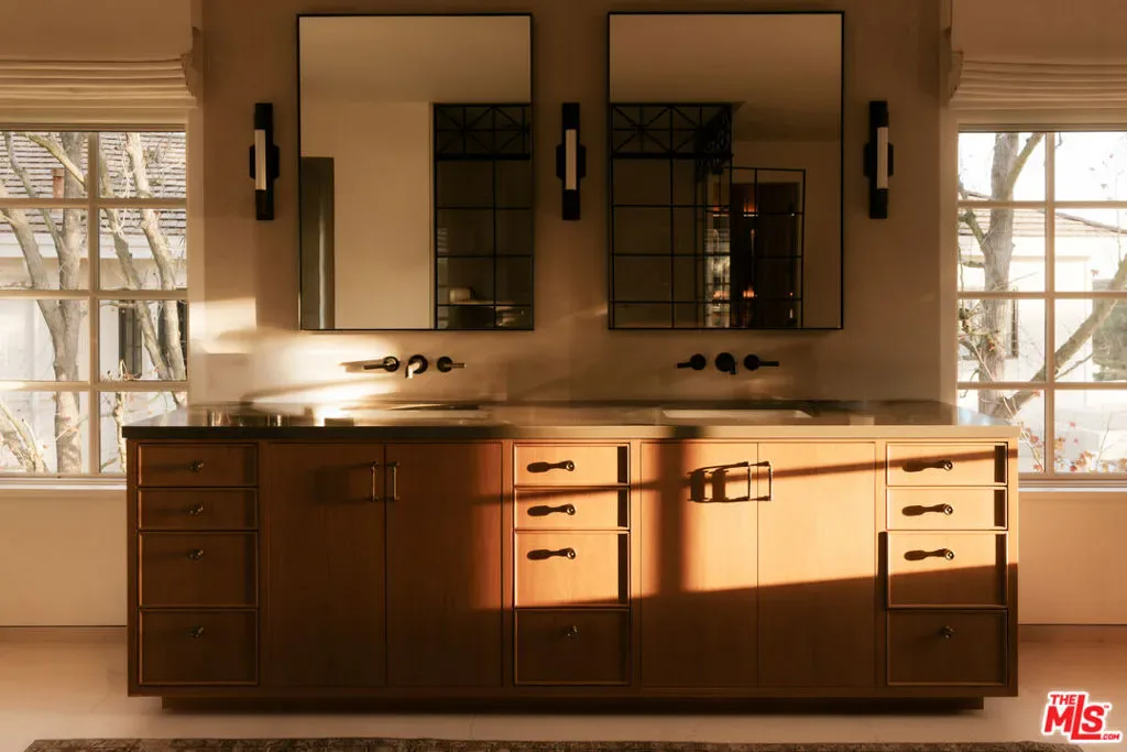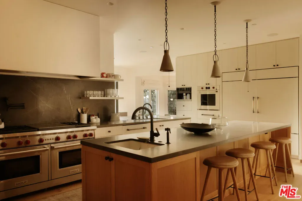 Set within The Summit, Beverly Hills’ premier 24-hour guard-gated enclave, this private 6-bedroom estate is positioned behind its own gates on over half an acre, offering rare city-light, ocean, and Catalina views. Recently reimagined by the notable Los Angeles design firm Studio Life/Style and completed in 2020, the home blends French countryside warmth with modern, architectural sophistication designed for effortless living, entertaining, and lock-and-leave convenience. A dramatic double-height entry sets the tone, opening to light-filled interiors defined by refined stonework, steel-framed windows, and thoughtful material continuity throughout. The main level flows seamlessly from formal dining to multiple living spaces, including a family room and den with wet bar, all oriented to capture western light and ever-changing sunset shadows. The kitchen is a showpiece anchored by richly honed Pietre Grey marble with a matching butler’s pantry both elegant and highly functional for everyday living or hosting. A true standout amenity is the oversized steam room on the main level, wrapped in limestone and quartzite slabs, creating a spa-level experience rarely found at this scale. A dedicated media room with blackout shades delivers a private theater environment, while smart-home systems, automated shades, elevator access, and integrated audio enhance ease and comfort throughout. Upstairs, all six bedrooms are thoughtfully arranged, led by a serene primary suite designed for luxury living. The spa bath features honed white limestone, dramatic slab stone accents, and steel-framed detailing reminiscent of a refined New York loft, complemented by three custom walk-in closets with LED-lit cabinetry. Additional bedrooms include a playful bunk room with eight beds, ideal for families or guests. The grounds are designed as a private resort: a saltwater pool and spa, covered gazebo lounge with heaters, and a fully equipped outdoor kitchen with pizza oven, BBQ, refrigeration, and prep space all set against sweeping sunset views. A sport court, sauna retreat, motor court, 4-car garage, and reverse osmosis filtration system throughout complete this exceptional offering. A rare combination of privacy, security, design pedigree, and panoramic viewsideal as a full-time residence, pied–terre, or refined family retreat in one of Beverly Hills’ most exclusive communities.