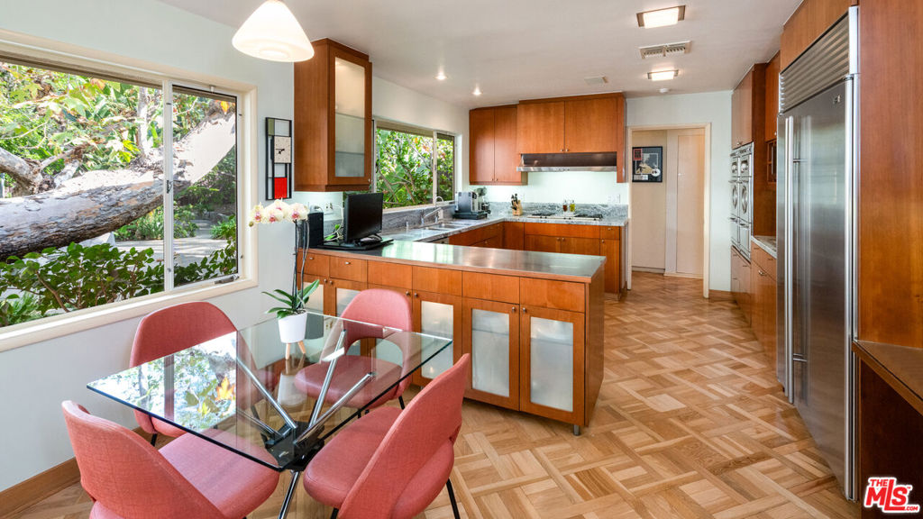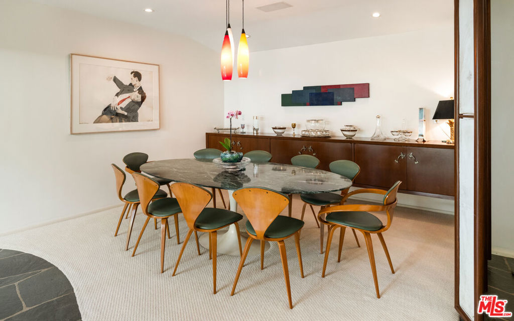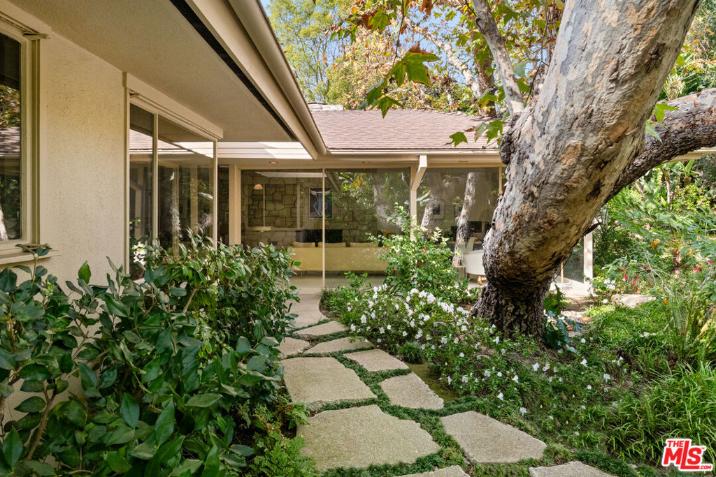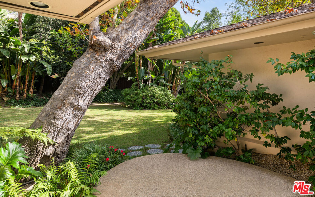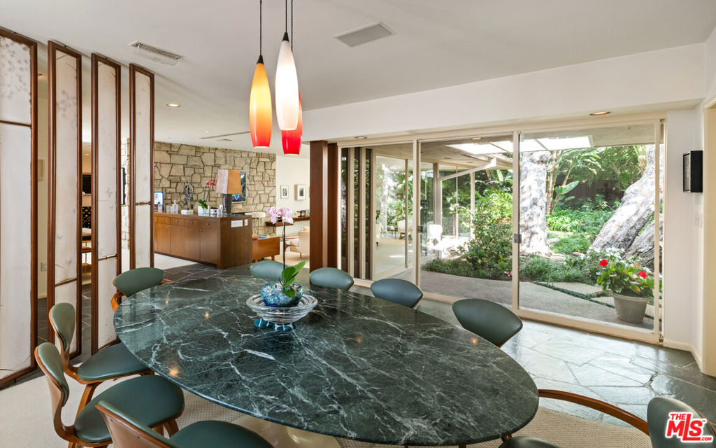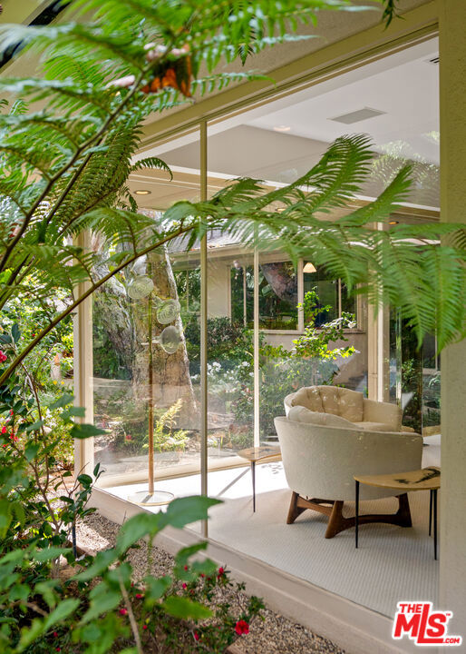 Set on the best street in Beverly Hills, this meticulous Mid-Century home seamlessly blends architecture and nature. Privately set behind mature landscaping, the home embodies classic California living with timeless appeal. Walls of glass line the main living spaces, filling the interiors with natural light and framing serene garden views throughout. A striking stone fireplace anchors the living room, complemented by rich wood accents, custom built-ins, and clean mid-century lines preserved with care. The living and dining areas flow effortlessly to multiple patios and a lush, private backyard, ideal for indoor-outdoor living and entertaining. A glass-wrapped sitting area offers a tranquil retreat overlooking the grounds, while the bedrooms enjoy peaceful garden outlooks and exceptional privacy. The expansive backyard, surrounded by mature trees, feels like a secluded oasis with room to relax, entertain, or reimagine. A rare offering on an oversized lot in Beverly Hills, this is a beautifully maintained Mid-Century classic. Elegant, private, and timeless.