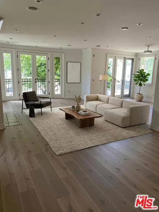 Gorgeous 1st floor unit for lease. Entire floor, approximately 3,000sf with multiple out door terraces. Private and direct entry to unit from elevator. Quite building featuring only three units. Prime and prestigious Beverly Hills location. Secure controlled access. Brand new hardwood floors, Central A/C, Fireplace, Stainless Steel appliances, in unit washer and dryer hook ups, tenant to bring their own machines. Gated parking to accommodate 3 cars. TENANT OCCUPIED UNTIL 4/15.