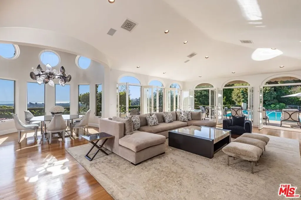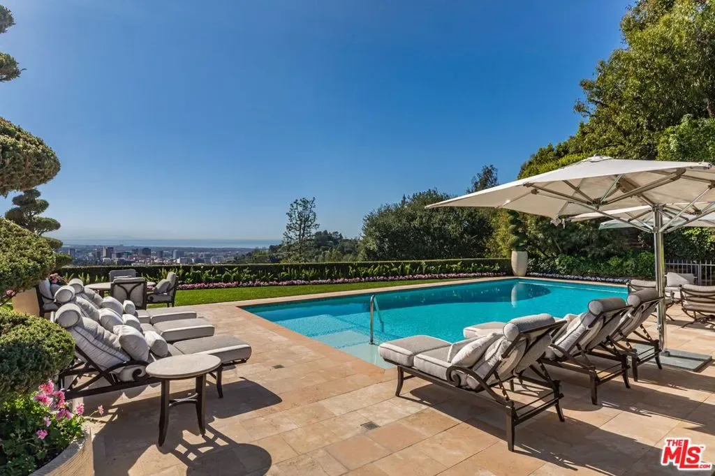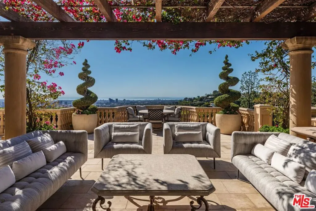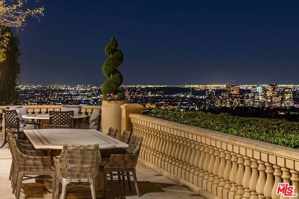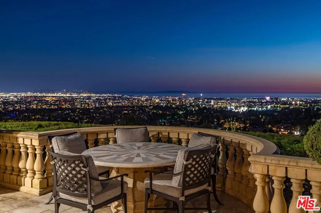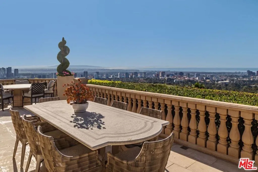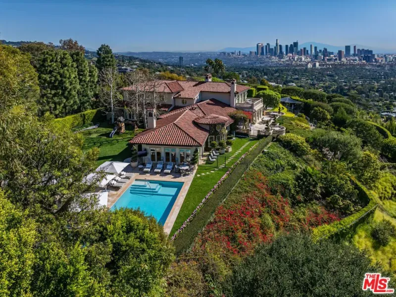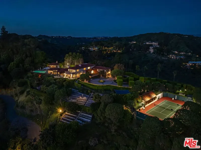 The number one best iconic 2.2-acre view property in the city that has it all. In the heart of Beverly Hills, just minutes from the legendary Beverly Hills Hotel, 1309 Davies Way delivers total privacy, panoramic city views, and a level of refinement reserved for the truly exceptional. Set on its own private promontory and located adjacent to the Pritzker, Murdoch, and future Gates family estates, this Modern Tuscan masterpiece is steeped in rare Hollywood legacy. Once home to Ricky Martin for many years, previously owned by English actor Michael Caine, and before that held by Doris Day’s family, the estate carries an iconic lineage that mirrors its stature. Behind gates, a long, curving, tree-lined drive builds cinematic anticipation before opening to a grand motor court. Recently reimagined through a multi-year renovation, the residence blends timeless Mediterranean romance with modern precision, offering a living experience that feels both classic and commanding. Inside, walls of glass frame explosive head-on city and coastal views stretching across the city to the Pacific. Nearly every primary room, terrace, and outdoor retreat is oriented to the horizon, creating a constant dialogue between architecture and landscape. By day, the home is flooded with light; by night, it hovers above a constellation of city lights. The grounds unfold like a private resort: expansive lawns, manicured gardens, orchard, guest house, and a championship tennis court with pavilion, all designed for grand-scale entertaining and effortless SoCal living. The great room and chef’s kitchen open directly to the outdoors, while a private theater and spa-level amenities complete the experience. The primary suite is a sanctuary in the sky, featuring its own terrace, sitting room, dual baths and dressing rooms, and flexible spaces tailored to a world-class lifestyle. Private, gated, and irreplaceable in location, history, and view, 1309 Davies Way is not just a residence, it’s a legacy estate reserved for the few.