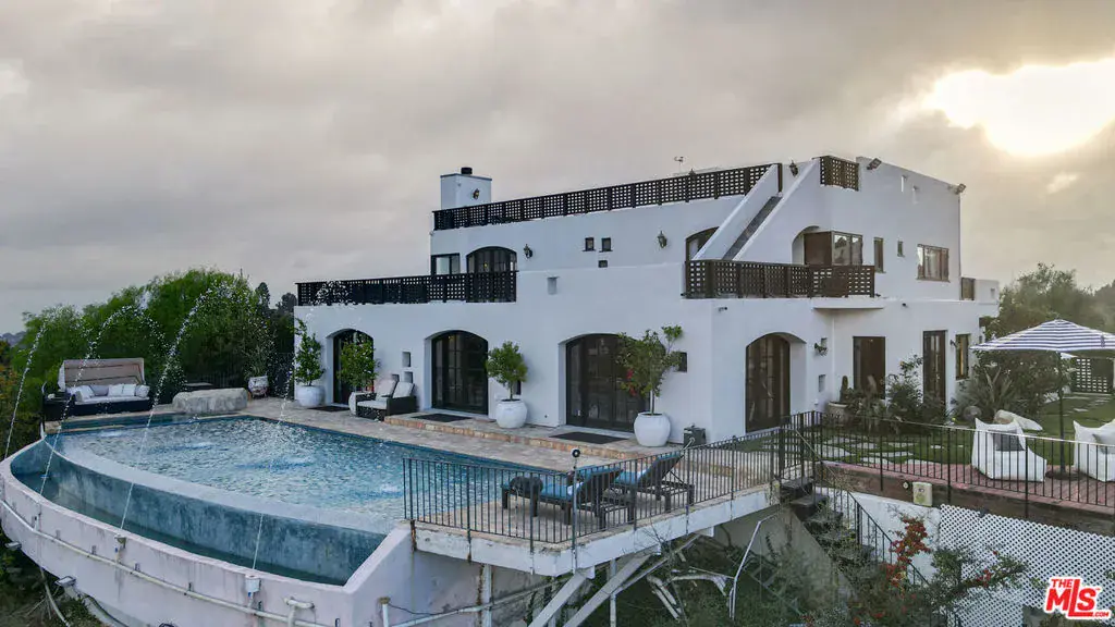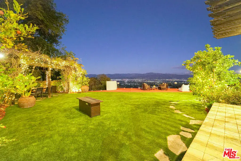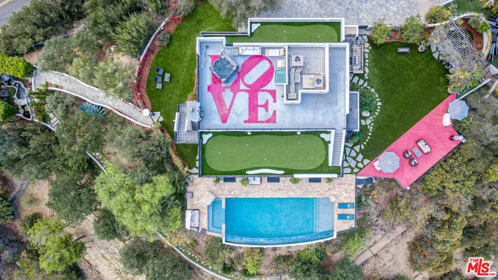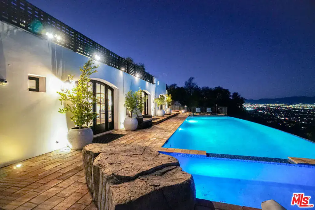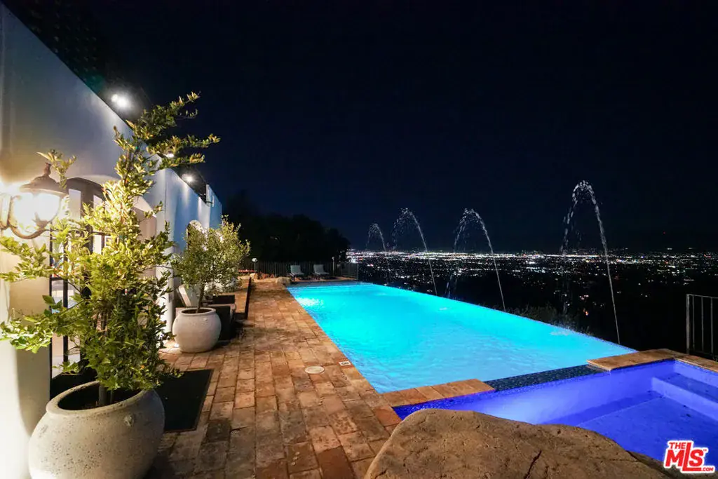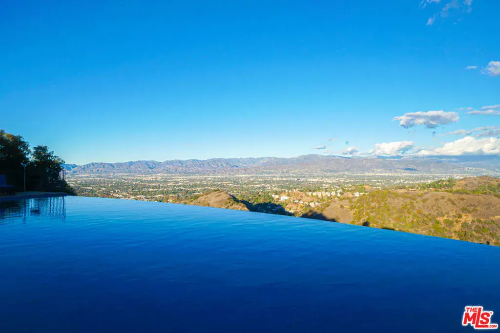 Seeking the ultimate Beverly Hills sanctuary where you can leave behind the hustle and bustle of everyday life? Look no further than this beautifully crafted secluded estate that provides the perfect blend of luxury and tranquility while being just moments from everything LA has to offer! Enviably set on over an acre atop famed Mulholland Drive, this residence commands spectacular views from an impressive 1,300 ft above sea level. A gated, private driveway leads to the grand 2-story facade. Inside, new luxury flooring and dark wood trim tastefully contrasts crisp white tones. Graceful archways greet you in the generously sized open entertainment areas as you seamlessly transition from one room to another. Multiple French doors in the family room and dining area frame sweeping panoramas of the city, ocean, and Catalina Island. A raised-hearth fireplace with a stacked-stone surround anchors the stylish volume ceilings, warming the living room as you gather. Shake up your favorite cocktails and head outside to relax by the infinity pool and appreciate the stunning views in absolutely every direction you look. Sleek and sophisticated, the chef’s kitchen equips you with top-notch stainless steel appliances, abundant white wood cabinetry, granite countertops, an oversized island, and a breakfast nook with access to the patio. Working from home is even better in your private office overlooking breathtaking views. Admire picturesque sunsets from your well-sized bedrooms, adorned with mirrored closets and French doors that open to the large wraparound balcony. Surpassing all in size, the primary suite has a walk-in closet and an ensuite with a spa-like soaking tub and scenic views. Endless hours of fun and leisure await in your expansive outdoors that offers numerous entertaining decks, a resort-style infinity pool, two putting greens, and a pool cabana. Alfresco dining is bliss under the pergola as you enjoy delicious meals prepared on the built-in BBQ island. On cooler nights, sip a refreshing nightcap as you take a soothing dip in the rooftop spa while watching the sunset views and city lights twinkle below. Other notable features include a large private vineyard, a koi pond in the zen garden, a waterfall, and a professional music studio. The estate vineyard produces private reserve wines with multiple varietals, including Pinot Noir, Sauvignon Blanc and Cabernet. The golf decks are beautifully manicured with 9 holes and white artificial sandpits. Convenience is yours with smart-home technology including a Control4 music system, two Nest-operated HVAC units, app-controlled landscape lighting, home protection system, wireless pool features and a 16-camera CCTV system. Its fabulous location puts you near the world-class shopping, dining, and attractions of the Sunset Strip, West Hollywood, and Beverly Hills. Come grab the rare chance to call this Mulholland Oasis home!
