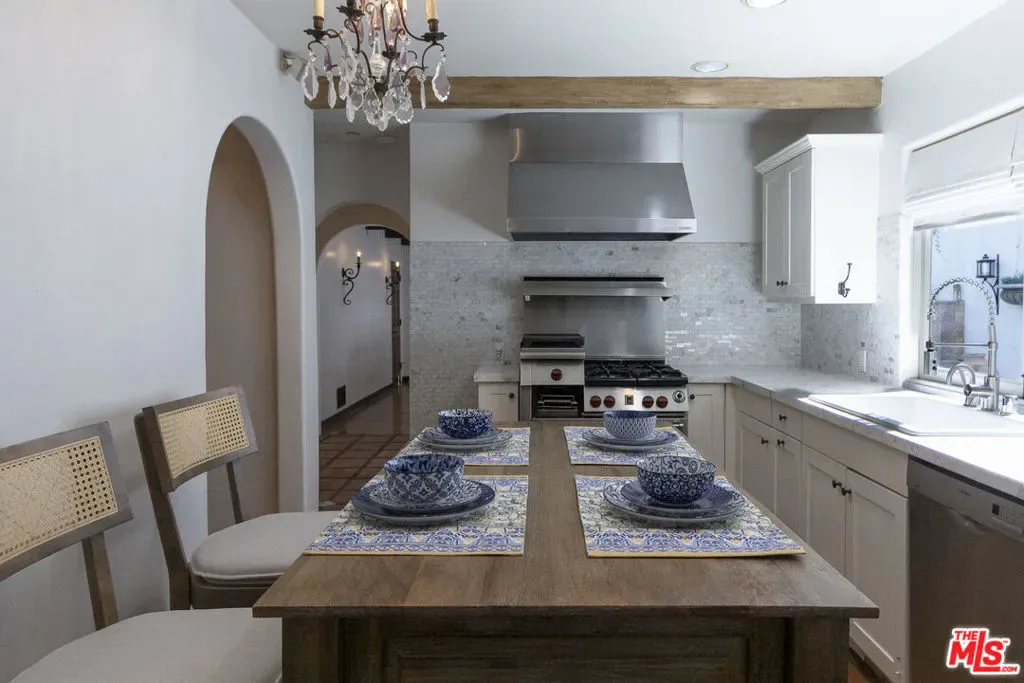 Exquisitely Restored Mediterranean Home in Prime Beverly Hills Post Office. Located in the highly sought-after Beverly Hills Post Office, this beautifully restored two-story Mediterranean blends timeless architecture with modern luxury. Just minutes from Beverly Hills and top dining, shopping, and entertainment, this home offers both convenience and prestige. Classic old-world details include tiled entry steps, an iron and glass front door, hand-hewn wood beams, and elegant French doors. The newly updated kitchen features Carrera marble countertops and top-of-the-line appliances, complemented by luxurious, fully renovated bathrooms and newly installed hardwood floors throughout. Large windows fill the home with natural light, opening to a lush, private backyard complete with a pool, fountains, and serene landscaping. Gated and secure, this exceptional property delivers the perfect blend of charm, sophistication, and modern comfort. A true must-see Beverly Hills gem.