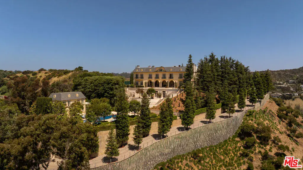 Poised high atop a promontory, this palatial European Estate boasts jaw-dropping 360 degree views of all of Los Angeles. Rich in privacy behind gates and up the long tree-lined driveway, this fortress of unparalleled magnitude is revealed. Situated in a world of its own overlooking the stunning gardens and city, this home is the epitome of royal living in the most sought-after city in the country. High ceilings, ornate details and grand-scale rooms are showcased beyond the luxurious foyer and Imperial Staircase through the massive double door entrance. Highlights from the main floor include an industrial grade chef’s kitchen with an adjacent light and bright breakfast room, a formal dining room with double doors made with Venetian stained glass windows, an impressive living room with a gorgeous bar and fireplace, a billiards room, and a formal sitting room. Among the many jewels of this home is the two story library which includes a steel spiral staircase and a vibrant irreplaceable stained glass light fixture. Upstairs, the master bedroom rivals that of a European castle with multiple private terraces, city and nature views, his and hers closets, a massage room and a luxurious bathroom made with lapis stone. In addition to the master suite there are four oversized en suite bedrooms each with beautiful views and walk in closets. The lower level is an entertainer’s paradise with a theater, ballroom that opens up to a sprawling terrace where your guests can soak in the picturesque views, and a wine cellar that’s authentically outfitted as the storefront of an early 18th century English saloon. The backyard consists of a sparkling pool and spa, outdoor kitchen, putting green, a fruit and vegetable garden, tennis court, koi pond, and endless places for dining al fresco. In addition to the various amenities, the home is also equipped with an oversized gym. This tranquil oasis is quintessential to the highest class of luxury living, built for those who hold history, design, and beauty in the highest regard.