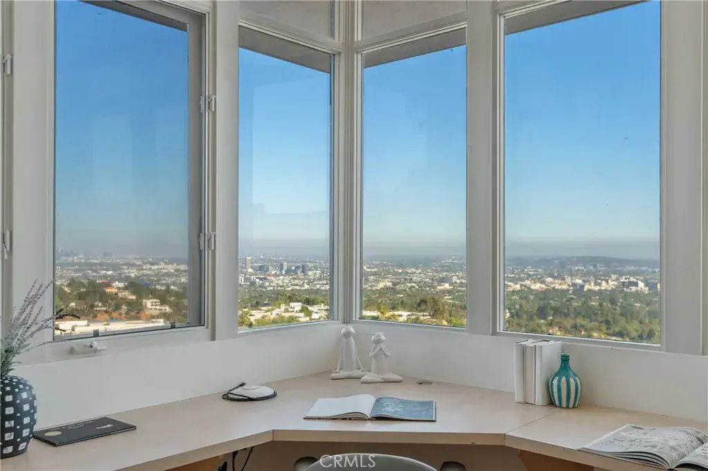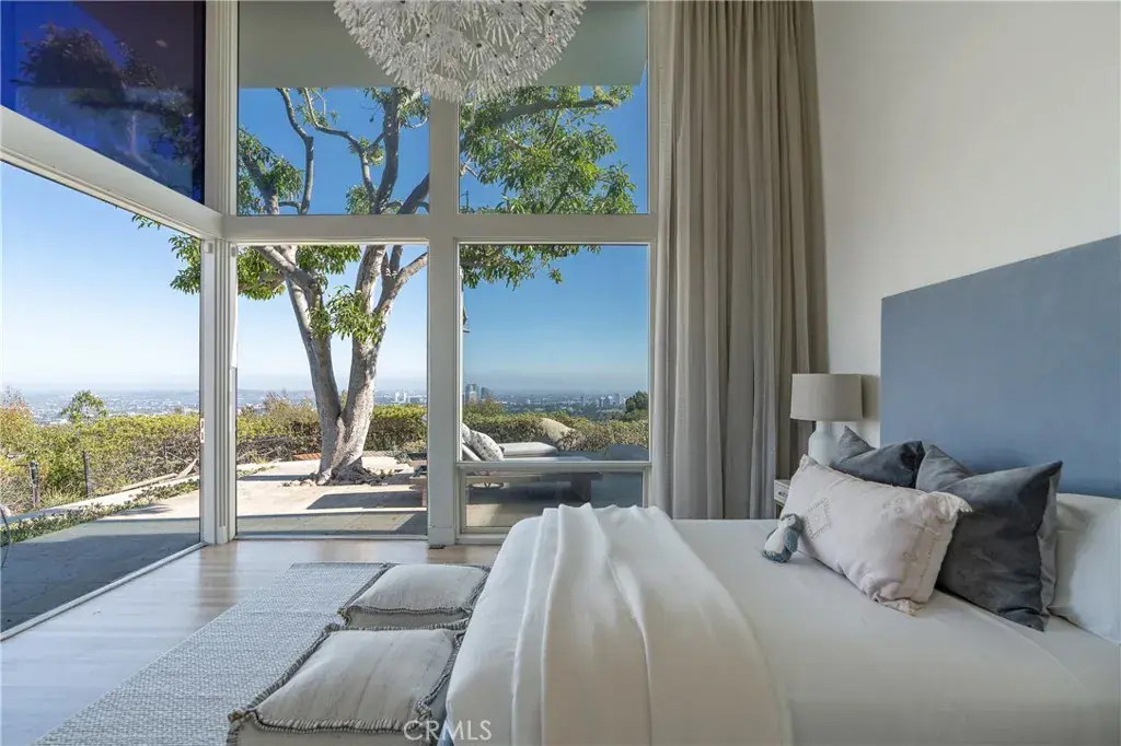 Tucked behind gates at the end of a long private driveway, this extraordinary contemporary estate sits on nearly an acre of prime promontory land, offering absolute privacy and some of the most commanding, unobstructed views in all of Los Angeles. From downtown to the ocean, every sunrise and sunset becomes a daily masterpiece. Walls of glass and picturesque windows frame panoramic vistas from nearly every room. Inside, the residence features 4 spacious bedrooms, a library, dedicated office, and a voluminous living room with soaring ceilings. A versatile bonus room is ideal as a gym, playroom, 5th bedroom, or den, while wellness amenities include a sauna and an indoor sports court with a professional basketball hoop. Designed for seamless indoor-outdoor living, French doors open to a resort-style pool area perfect for entertaining or quiet reflection. A generous garage with direct access and a large motor court provide ample parking. A rare opportunity to live in a one-of-a-kind Beverly Hills sanctuary where world-class privacy meets breathtaking natural beauty.