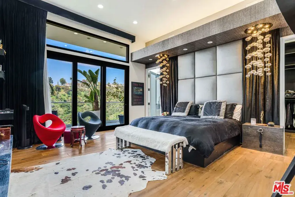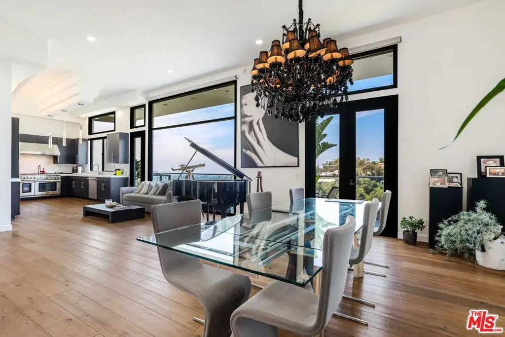 Striking architectural masterpiece boasting panoramic city, canyon, and ocean views. Designed for exceptional entertaining, the home features a modern open layout with expansive living and dining areas, soaring 12-foot ceilings, a dramatic fireplace, and wide-plank French oak floors throughout. Floor-to-ceiling glass doors and windows flood the space with natural light and showcase stunning views from every room.The luxurious primary suite includes a spa-inspired bath with exquisite finishes and a custom walk-in closet. Three additional en-suite bedrooms and a separate powder room offer comfort and privacy for guests. A spacious media/theater room is outfitted with state-of-the-art surround sound for an immersive experience.The sleek chef’s kitchen features top-of-the-line Thermador appliances, custom cabinetry, and elegant glass countertops. Multiple terraces, a rooftop deck, and a built-in firepit create ideal spaces for outdoor living and entertaining.Beautifully landscaped with a dramatic courtyard entry, the home is gated and private, equipped with a full security system and surveillance cameras. A large finished basement includes a wine cellar or potential artist’s studio, with room to add a pool. Adjacent property 1442 Claridge (two APN’s) is included in this purchase price. (If both APN’s are purchased this property would be a street to street lot.)