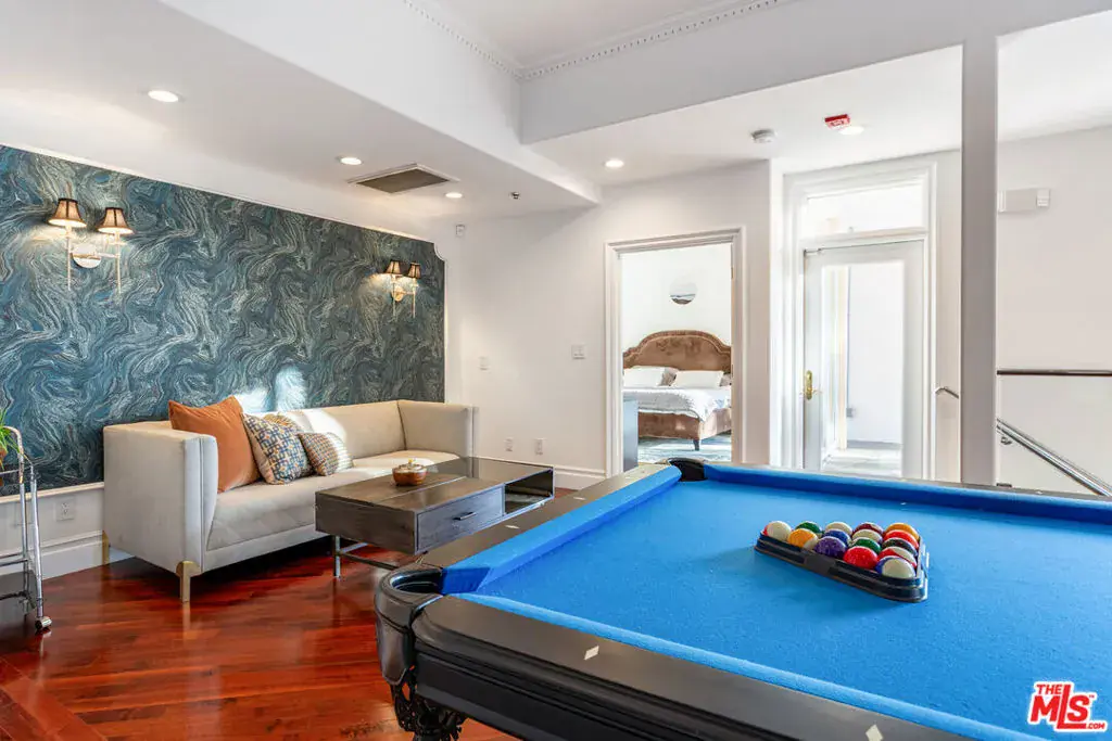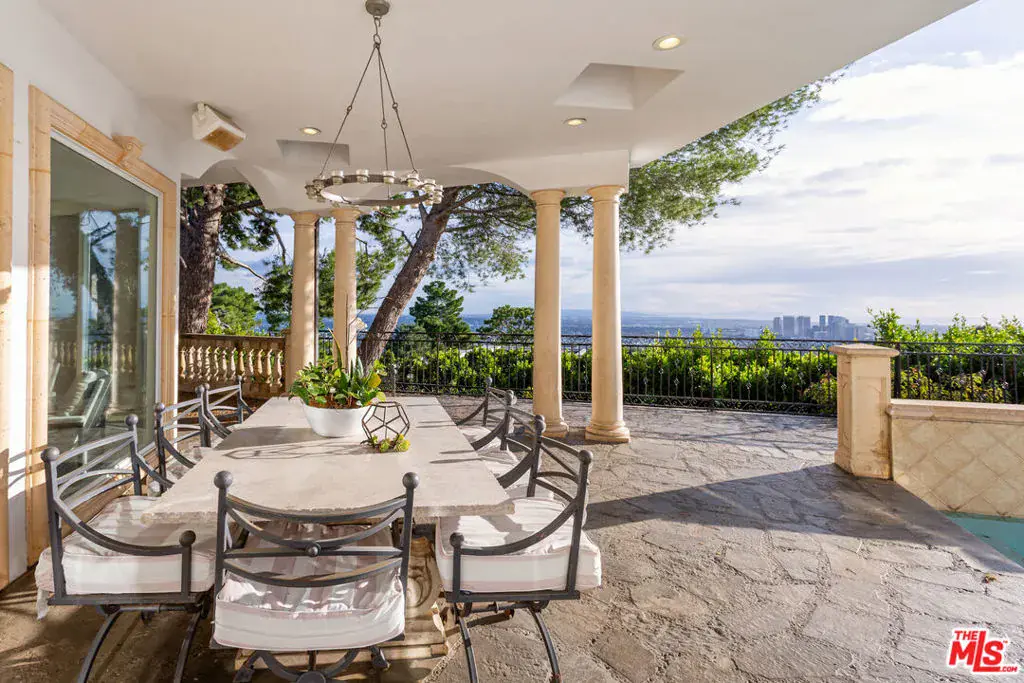 ** FULLY FURNISHED AS SEEN** 1491 Carla Ridge is a Santa Barbara Modern estate with breathtaking views, basketball court and recently reimagined with exquisite designer touches, including contemporary art, and all-new luxury furnishings throughout. The home delivers a resort-style experience. Set behind gates on a massive private estate, the property welcomes you with a grand motor court and immediately draws your eye to sweeping, jaw-dropping panoramic views showcased from nearly every room. Light-filled interiors flow effortlessly to multiple terraces and outdoor spaces, each capturing the unparalleled vistas that define this home. Resort-style amenities include a gated basketball/sport court, a private gym, library, billiard room, and numerous private lounge areas thoughtfully placed throughout the home perfect for a large family seeking both connection and separation. The grounds offer an abundance of usable flat outdoor space for dining, lounging, and entertaining, all framed by dramatic vistas from the backyard and every bedroom. The private primary suite offers unobstructed views over the backyard and the Los Angeles skyline, complete with a spacious dual walk-in closets and a marble spa bathroom. Additional guest suites also feature walk-in closets and beautifully appointed stone bathrooms. A separate lower level enhances both privacy and entertainment, offering two bedrooms, a kitchenette, and a dedicated movie theater ideal for guests, staff, teens, or family living. Mature landscaping and strategic design ensure the property enjoys total privacy while still embracing its incredible scale. A rare property with unmatched views, 1491 Carla Ridge stands as one of the most exciting rental offerings in Beverly Hills.
