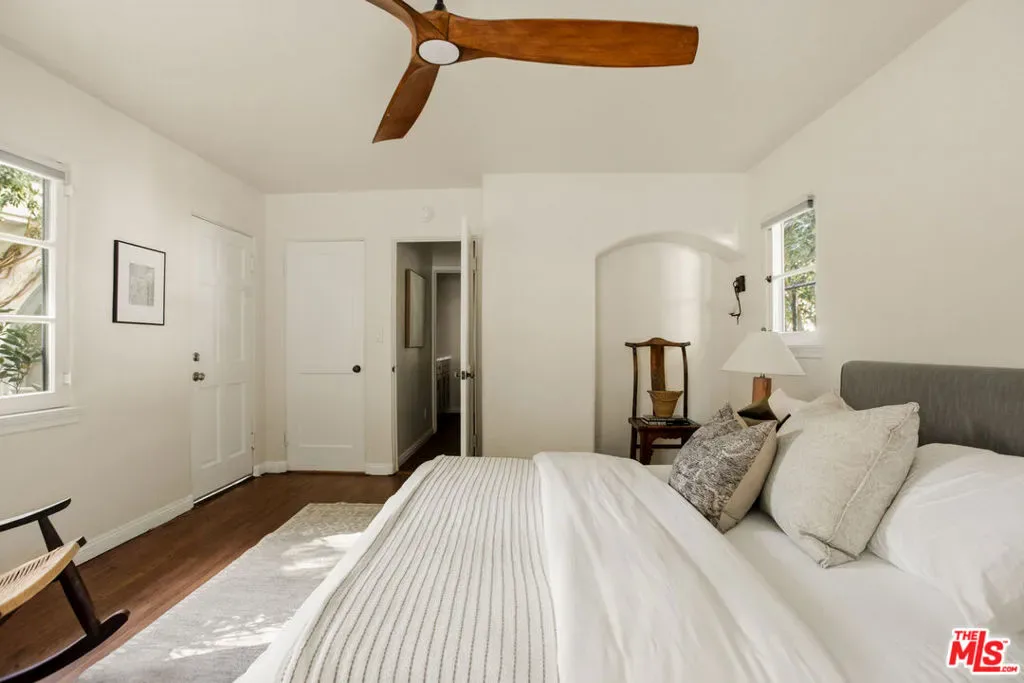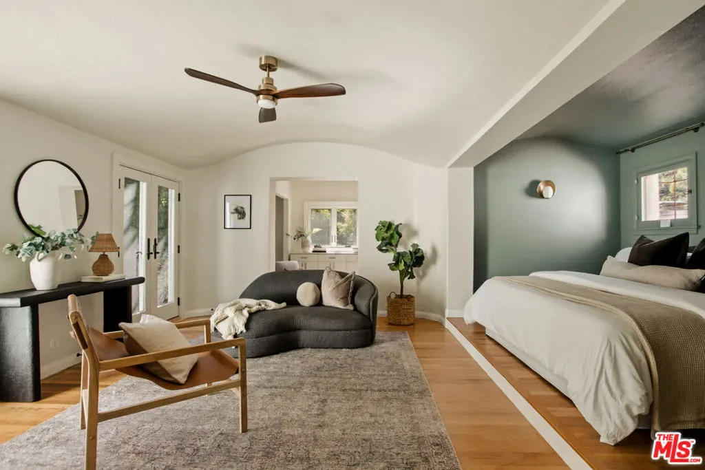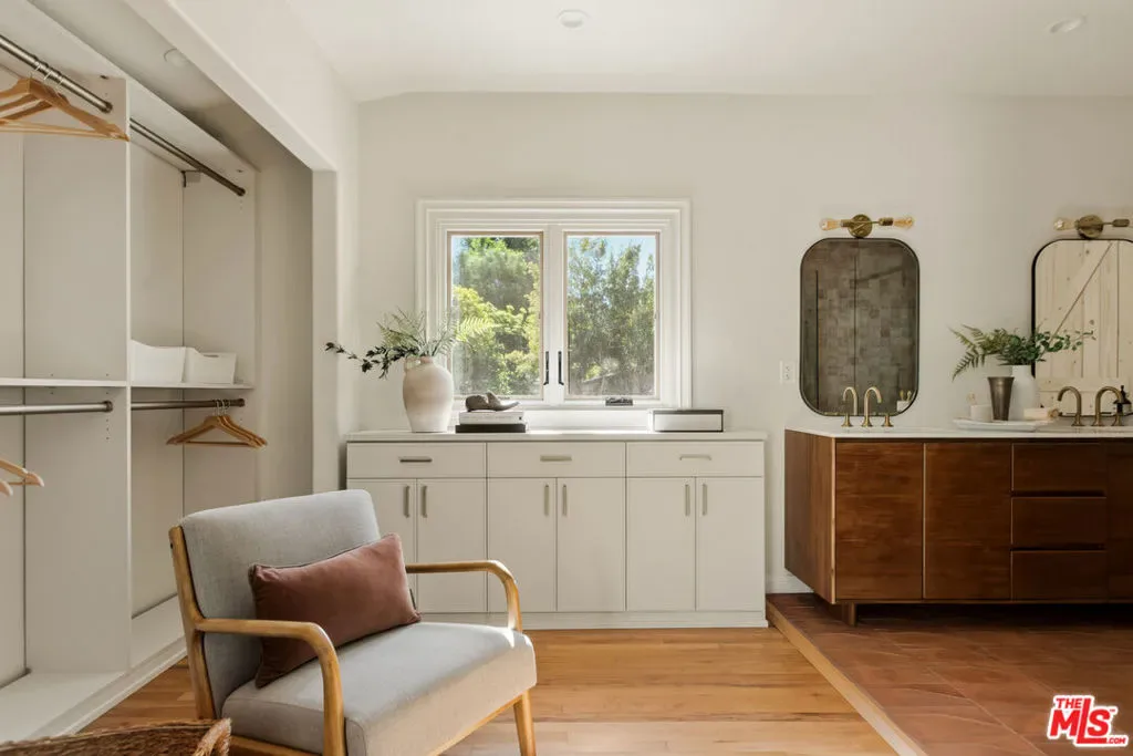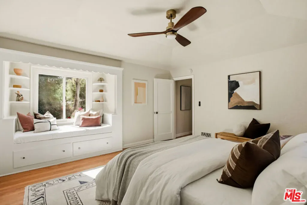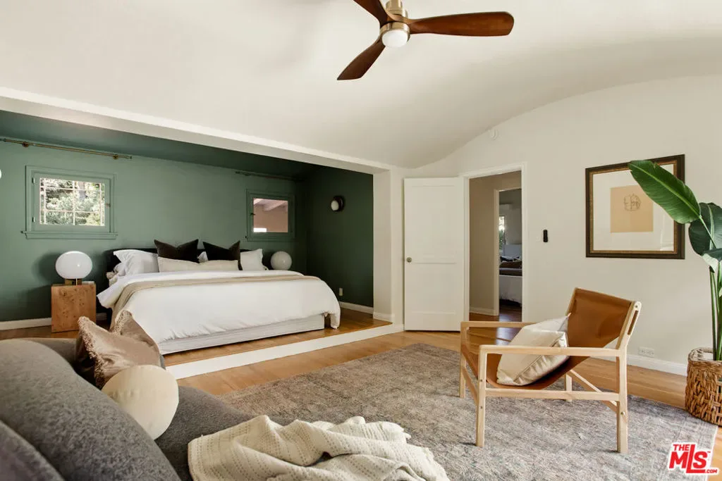 Located in the serene Beverly Crest enclave of Beverly Hills Post Office, this 1928 Spanish residence originally designed and built as the personal home of architect James Conway seamlessly blends timeless character with modern livability. Featuring four bedrooms and three newly remodeled bathrooms, the home offers expansive living spaces that honor its architectural heritage while catering to today’s lifestyle. The dramatic step-down living room showcases vaulted king post truss ceilings, rich original details, and a striking arched, tile-accented fireplace. The newly updated chef’s kitchen includes an 8-burner Wolf range, a double-door Sub-Zero refrigerator, ample storage, an eat-in dining area, and convenient access to both a side entrance and the attached two-car garage with laundry. Upstairs, three spacious bedrooms offer privacy and abundant natural light. The primary suite is a true retreat, featuring a private balcony, separate living and dressing areas, and a spa-inspired bath with dual vanities and a walk-in shower all thoughtfully designed to capture light from both the front and rear of the home. Just minutes from Coldwater Canyon Park and Franklin Canyon Park, and located within a highly regarded school district, this rare lease offering presents an exceptional opportunity to experience iconic Los Angeles architecture with comfort, privacy, and proximity to nature.