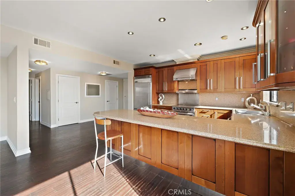 Top Floor and Corner Residence with the best Views of downtown under 1.3M in Beverly Hills. Low HOA at $400/month. Sellers are ready to sell! Walking distance from Rodeo Dr. 2 bedrooms, 2 full baths, and 1,640 SF of living space, highlighted by a wraparound corner balcony and private in-unit laundry. VIEWS of Downtown from your balcony, kitchen and dining space. More VIEWS of Century City sky rises and palm trees from your West and South facing balcony. Lavish double door entry into the unit where you’ll be covered in light shining through the wall of West facing windows. Morning sunrises over coffee or breakfast in your Viking-equipped kitchen, framed with rich wood cabinetry. High ceilings in every room, this residence stands apart as the crown jewel of the building. Master bedroom has enough space for a California King bed, additional seating space, office desk, and more. Huge walk in closet with built ins and the sizable en-suite bathroom includes a double vanity and a hot tub. The guest bedroom has an advantageous size and a closet with a built in organizer. Second bathroom also features a large soaking tub. Located within the prestigious Beverly Hills School District right in between Beverly Vista Middle School and Horace Mann Elementary, moments from Rodeo Drive, upscale dining, shopping, and renowned art and entertainment venues.