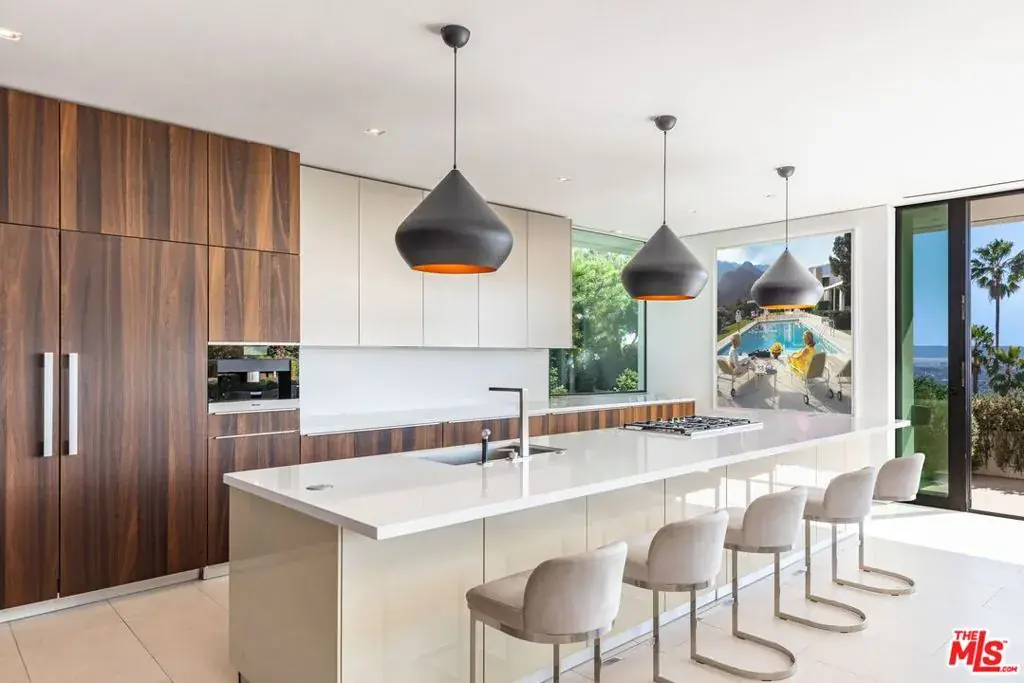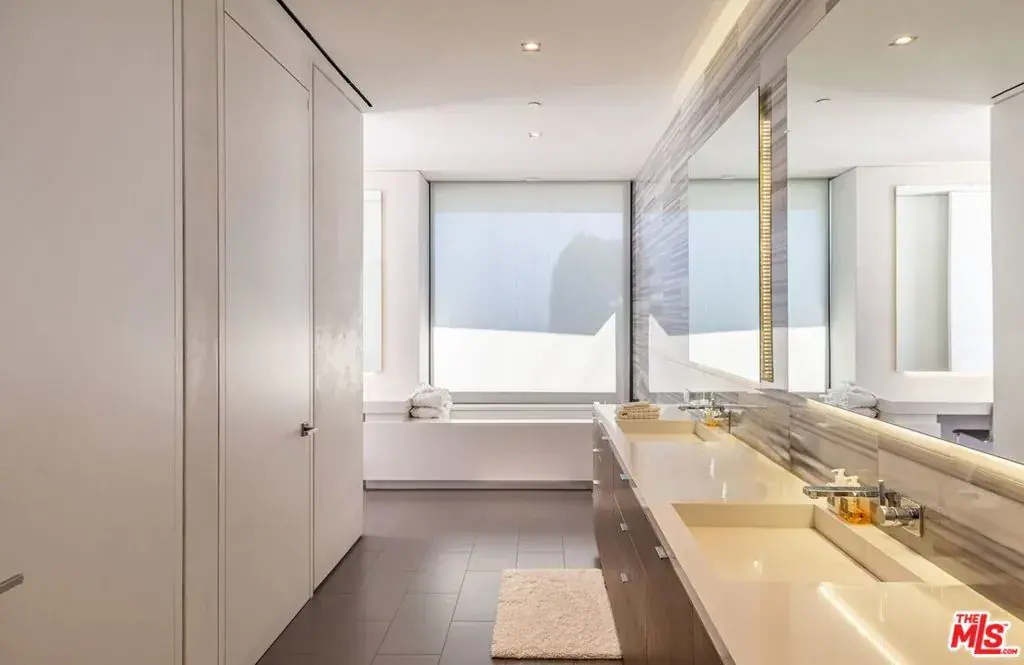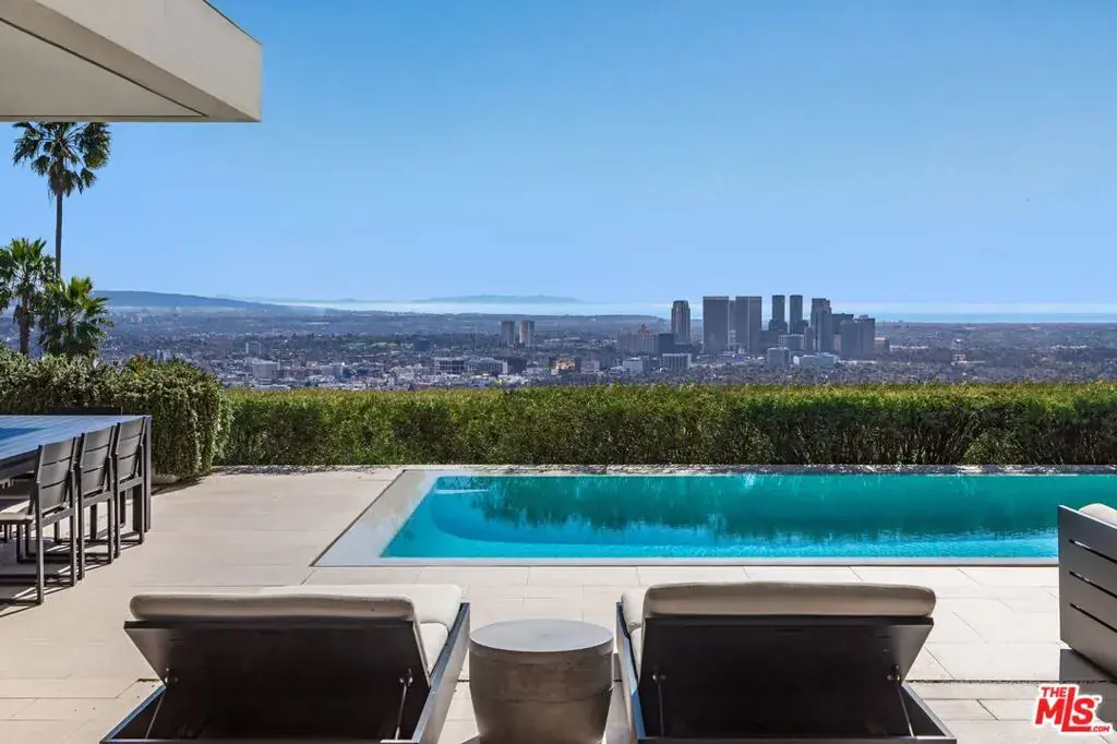 Set on one of Trousdale’s most coveted streets, this striking one-story contemporary by renowned firm XTEN commands breathtaking, unobstructed views from Downtown Los Angeles to the Pacific Ocean. Nearly 7,000 square feet of single-level living is designed for seamless indoor-outdoor entertaining, with disappearing Fleetwood glass walls opening to panoramic vistas at the touch of a button. Finished with the finest materials, the home features five bedrooms and six bathrooms, each executed with exceptional craftsmanship. A gated motor court and custom water feature create a dramatic arrival, leading to a stunning glass entry and light-filled open floor plan with soaring ceilings and bespoke nine-foot hardwood doors. Amenities include a state-of-the-art home theater, secondary prep kitchen, Control4 smart home system, and a temperature-controlled 1,000-bottle glass wine cellar. The private, landscaped backyard offers a fireplace lounge and sweeping views, redefining elevated entertaining. A rare opportunity to own a world-class architectural estate at an exceptional value. Shown to pre-qualified clients only.