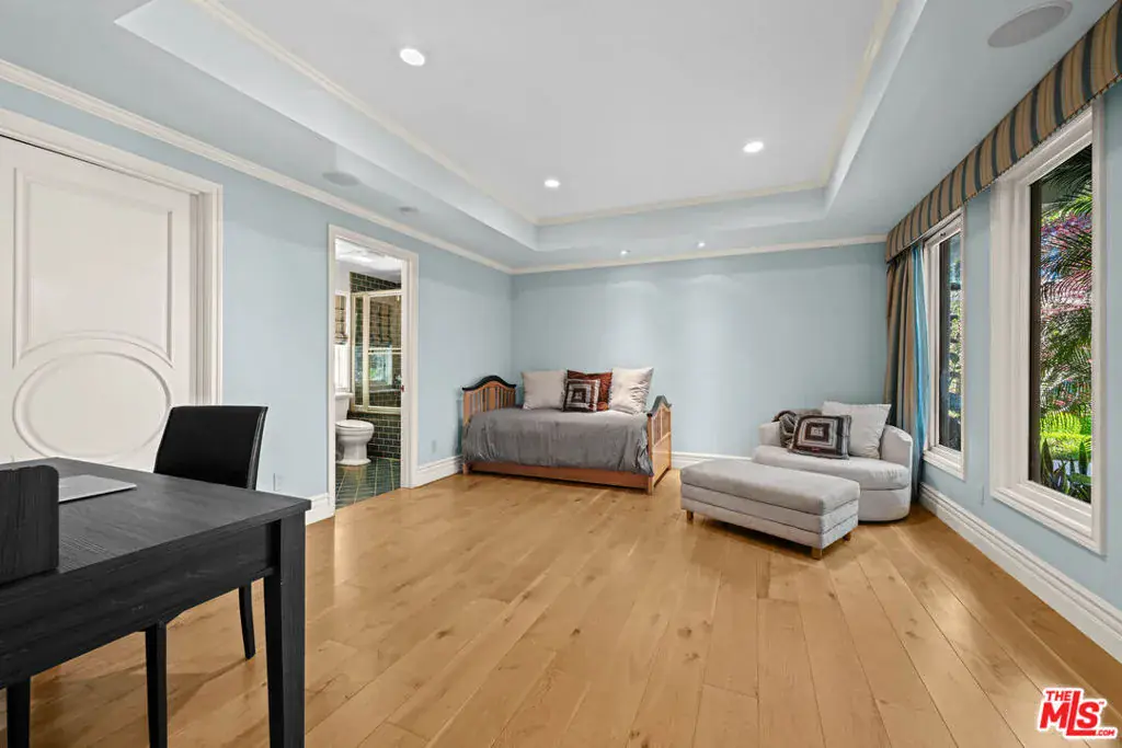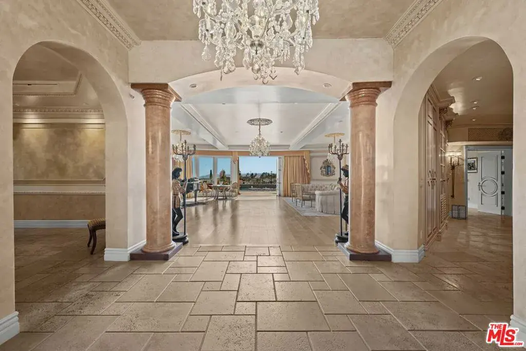 Experience luxury living in this recently renovated 5-bedroom, 5 bathroom gated Mid-Century Modern contemporary home, ideally located in prestigious Beverly Hills at Trousdale Estates. Featuring an open floor plan and soaring ceilings, the home offers breathtaking jetliner views from the city to the ocean with privacy and serenity. A formal entry leads to a spacious living room with multiple sitting areas, a sleek marble fireplace, and a stylish bar. The formal dining room and gourmet kitchen equipped with top-tier appliances and a large center island are perfect for entertaining. A bright breakfast area overlooks the pool and beautifully landscaped outdoor spaces. The home also includes expansive patios, a large entertainer’s deck, an attached guest suite, and a separate lower-level 2-bedroom, 2-bath guest house ideal for guests, staff, or home office use. This one-of-a-kind lease opportunity is perfect for the most discerning tenants seeking elegance, privacy, and unmatched views.