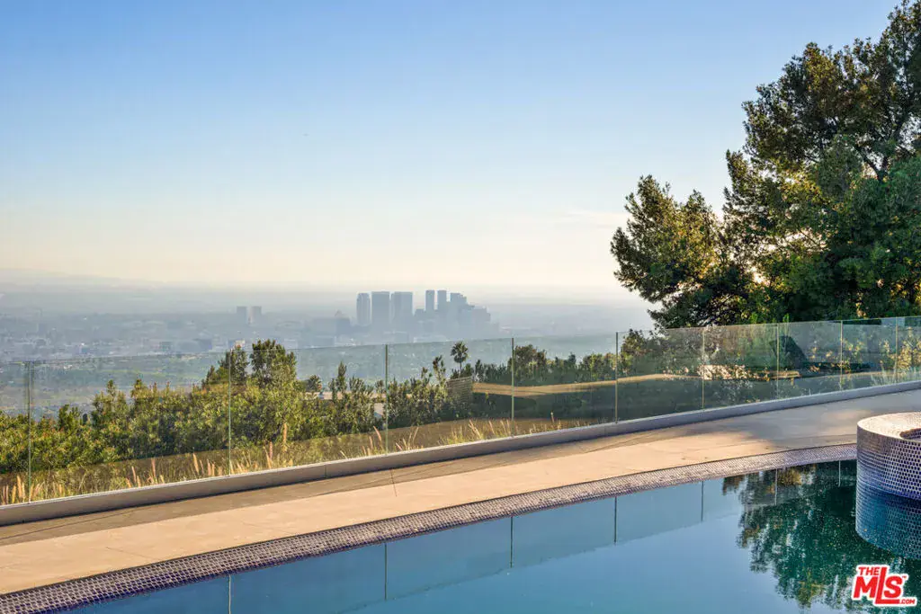 Located on the hillside of Trousdale Estates, this Carla Ridge home boasts an unobstructed 180 degree panoramic view of Los Angeles, stretching across downtown Los Angeles’ skyline to Catalina Island. The property features an infinity edge pool/jacuzzi, master suite, and 4 additional bedroom suites, all privy to the incredible panoramic Los Angeles view. The Steve Hermann-designed home, in the style of Mid-Century Modernism Redefined, takes full advantage of the amazing property views, elegantly blending indoor and outdoor space. This bright, luxury home includes multiple skylights and walls of glass to take full advantage of outdoor views and sunlight.