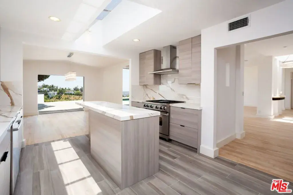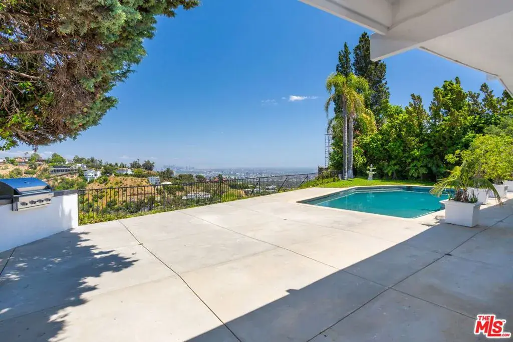 One-story, newly remodeled contemporary home with breathtaking panoramic city and canyon views from nearly every room. This exceptionally bright and airy residence offers an open floor plan featuring hardwood floors, elegant custom molding, and expansive sliding metal doors that flood the home with natural light, creating a warm and inviting ambiance. The beautifully updated kitchen and bathrooms showcase high-end finishes and top-of-the-line Viking appliances, including refrigerator, range, and outdoor barbecue ideal for both everyday living and entertaining. A private grassy yard with pool provides a serene outdoor retreat. Additional highlights include a separate laundry room, ample storage, two additional parking spaces in the driveway, and abundant unrestricted street parking. Ideally located near Rodeo Drive, premier shopping and dining, and The Beverly Hills Hotel. Property is offered unfurnished. Some photos have been virtually staged.