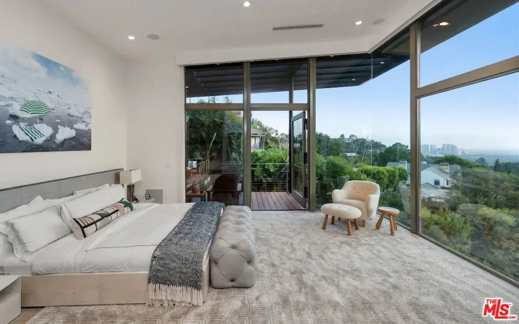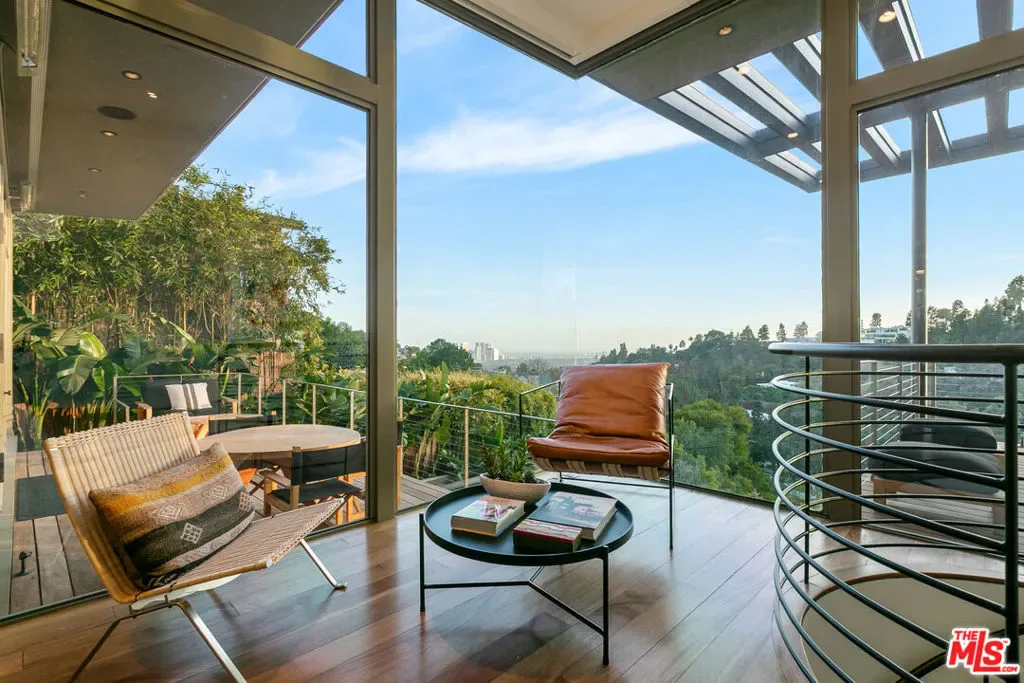 Perched on a quiet street in the coveted Crest Streets of Beverly Hills, this iconic mid-century architectural masterpiece originally designed in 1948 by legendary designer Greta Grossman as her personal residence seamlessly blends timeless design with modern luxury. A dramatic arrival opens into sun-drenched living spaces where walls of glass frame sweeping city lights and lush canyon views, creating an effortless indoor-outdoor flow that defines the best of Southern California living. The open living and dining areas spill onto expansive patios and decks, perfect for sunset cocktails or intimate gatherings under the stars, while a sleek, thoughtfully updated kitchen anchors the home with style and functionality. Upstairs, serene bedrooms – including a stunning primary suite with breathtaking views and a private terrace – offer tranquil retreats above the city, with a total of 3 bedrooms plus a dedicated office. Downstairs, a versatile media lounge or guest suite adds flexibility for entertaining or extended stays. Outside, a private resort-style setting awaits with a sparkling pool, spa, grassy yard, and multiple outdoor entertaining areas surrounded by mature landscaping and total privacy. A rare architectural gem with pedigree, views, and undeniable Beverly Hills sophistication, this one-of-a-kind residence delivers the ultimate mid-century lifestyle in one of the city’s most coveted hillside enclaves.