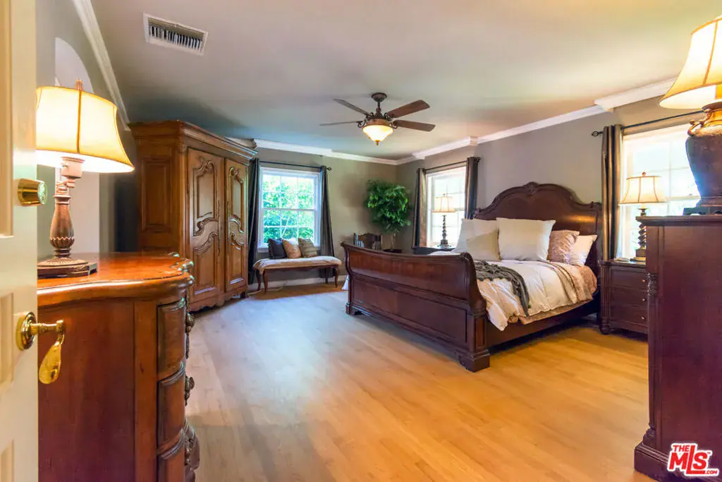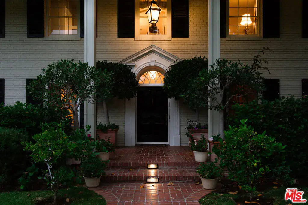 Secluded southern Colonial nestled on over 1/4 of an acre in the Beverly Hills Flats only 3 blocks from Beverly Hills Hotel! Approximately 5,000 S.F. of living space. Estate has beautiful hardwood floors, crown moldings, french doors, top of the line gourmet kitchen (2 New Miele Dishwashers/New Subzero Refrigerator/Freezer) with breakfast room with own sitting area. Gigantic balcony off master. Library with thoughtful built-ins, Huge formal dining room. The grounds are perfect for comfortable gatherings with pool, spa, grassy yard and 1000 s.f. guest house with full bathroom. Very private with tall shrubs surrounding front, sides of property and back yard. Home featured in Robert De Niro’s movie, “What Just Happened.”