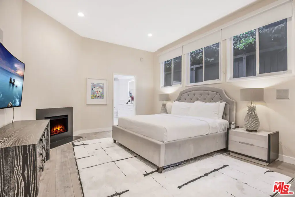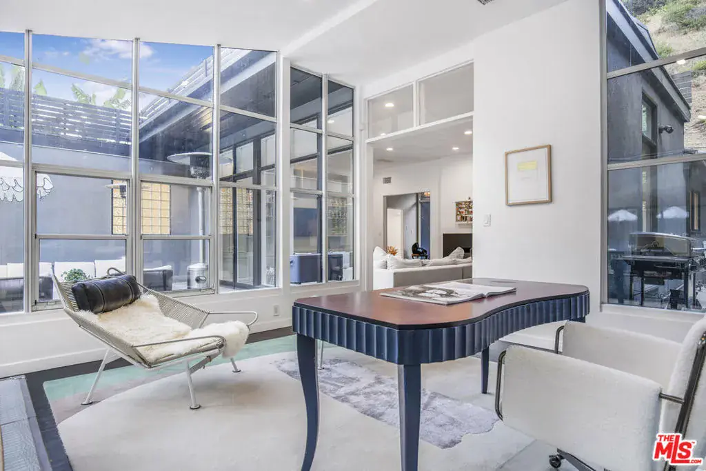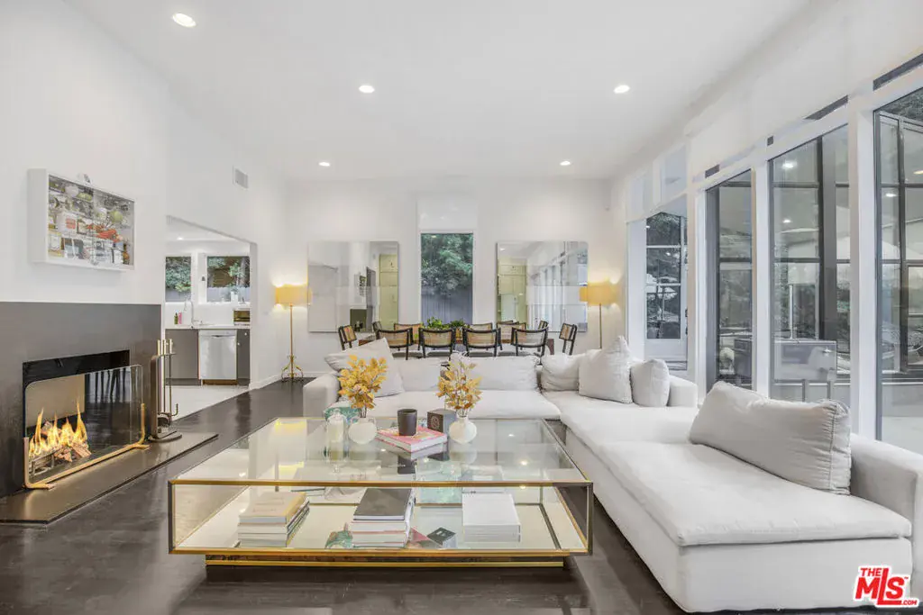 Stylish bungalow inspired home on an exceptional double lot in the heart of Beverly Hills, framed by lush, serene landscaping. This contemporary estate offers a private courtyard entrance ideal for gatherings, flowing into a welcoming foyer and striking floor to ceiling glass living room. A light filled atrium office and expansive grassy grounds complete the main living spaces. The primary retreat is thoughtfully designed with a fireplace, generous walk in closets, and a spa like bathroom featuring a soaking tub, glass shower, and sauna, with direct access to the outdoor lounge. The adjacent guest bedroom provides ample closet space and a full bath with glass shower and tub. The renovated kitchen is flooded with natural light and opens to a cozy dining area and third bedroom with en-suite bath. Outside, discover a sprawling backyard oasis perfect for entertaining, relaxing, or play, highlighted by a dramatic triple waterfall pool and spa, plus a separate hillside rear entrance with additional street parking. Ideally situated near Sunset Boulevard shopping and dining, and just minutes from the hiking trails at Franklin Canyon Park.